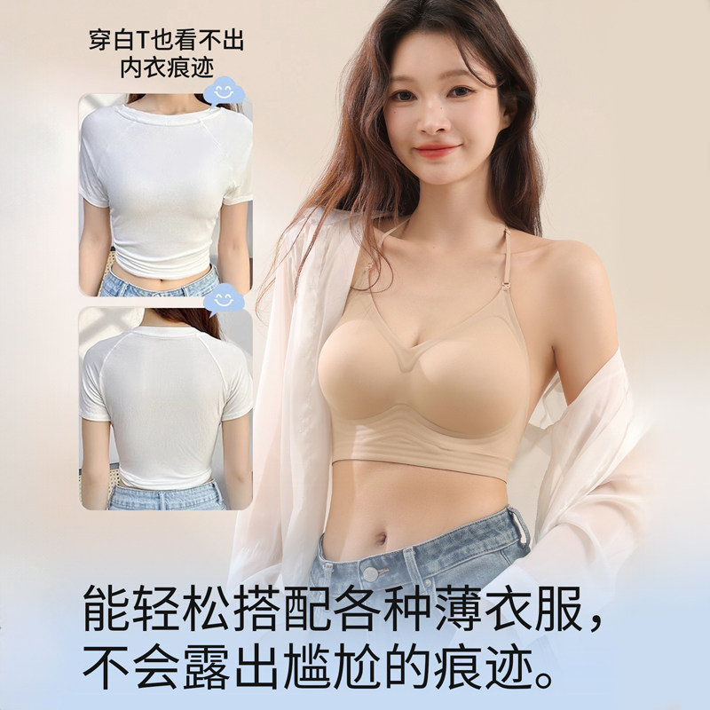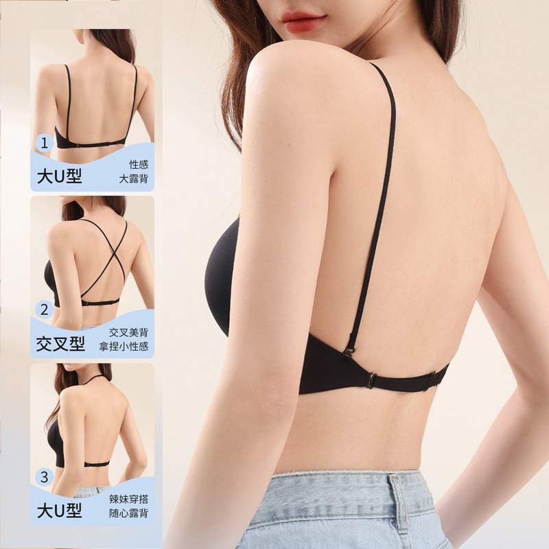 粉底液挂脖内衣小胸聚拢交叉无痕u型美背防下垂文胸旗袍隐形肤色