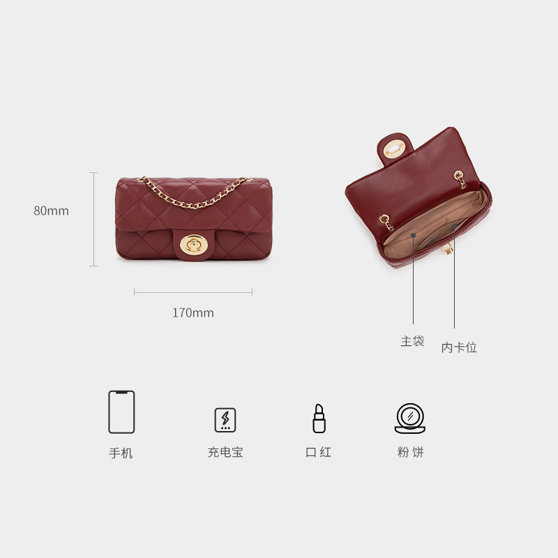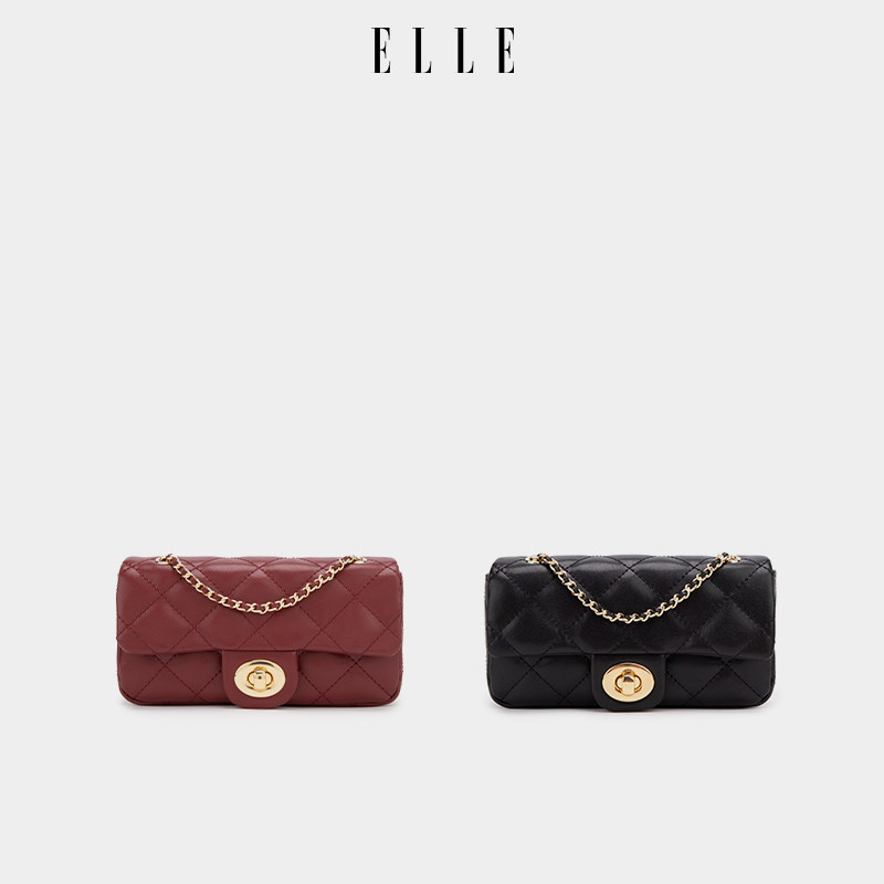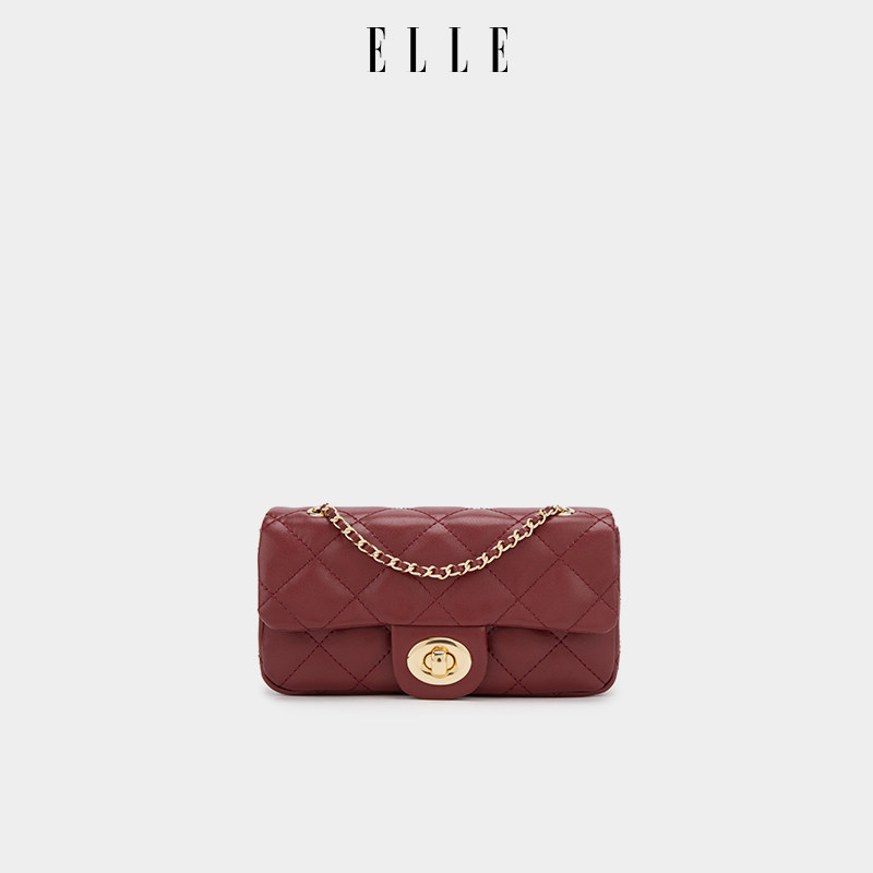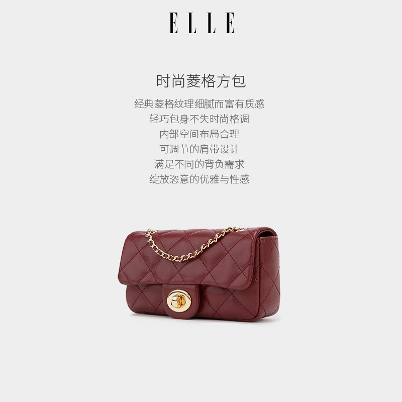 ELLE女包2025新款时尚菱格链条方包百搭单肩通勤斜挎包小方包
