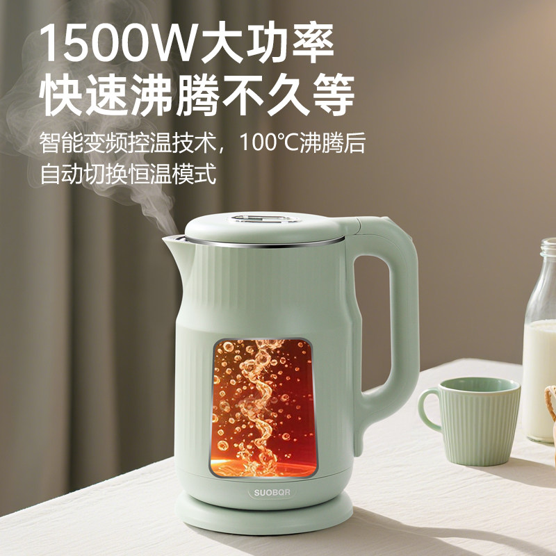 苏泊电热水壶保温双层2025新款家用烧水壶304不锈钢恒温大容量