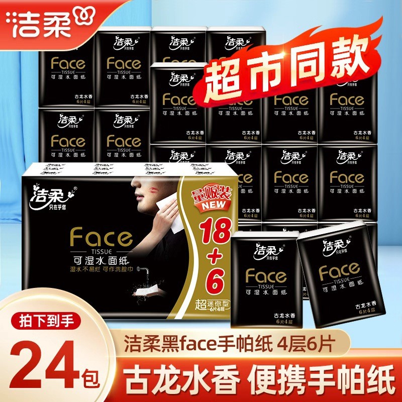洁柔手帕纸小包纸巾古龙水香手帕纸超迷你4层6片24包便携式餐巾纸