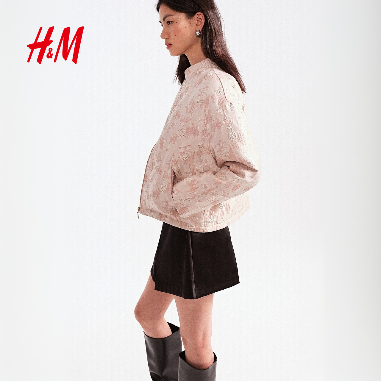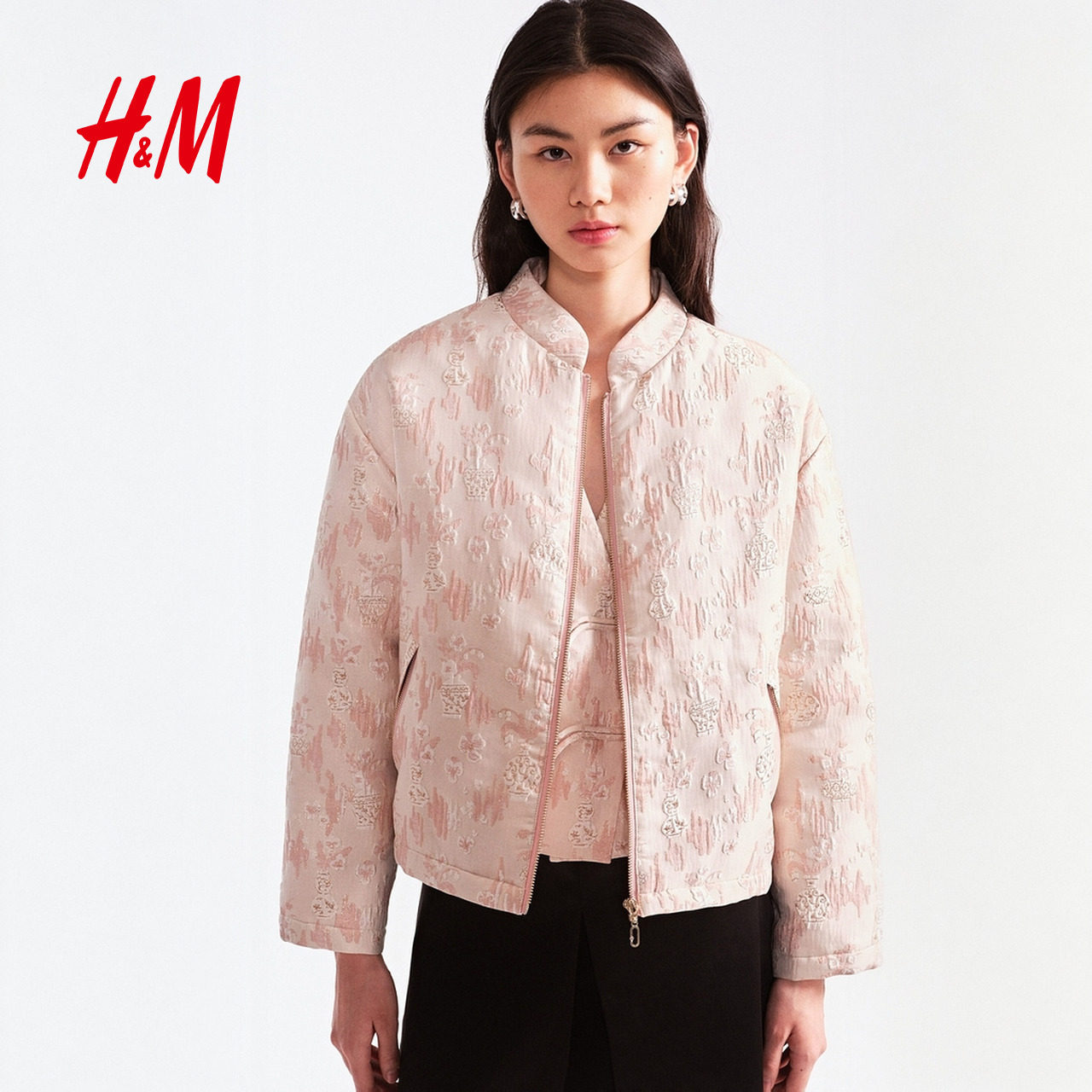 HM女装棉衣2026春季新款浅春系出游气质穿搭提花梭织外套1322632