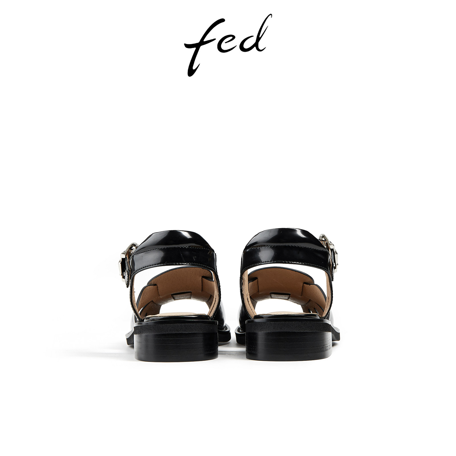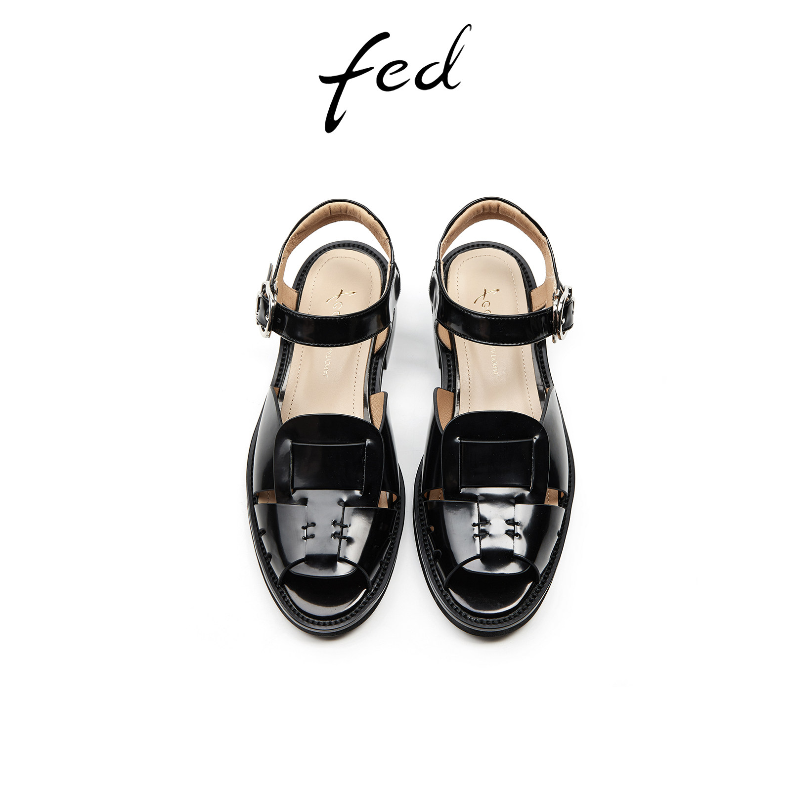fed编织罗马凉鞋夏季新款女鞋粗跟休闲皮凉鞋猪笼鞋女D0401-YA937