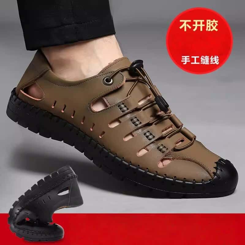 夏季凉鞋男2025新款透气镂空皮鞋男真皮软底休闲牛皮中老年爸爸鞋