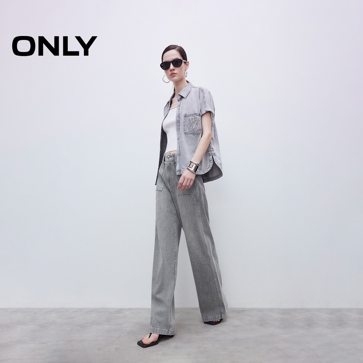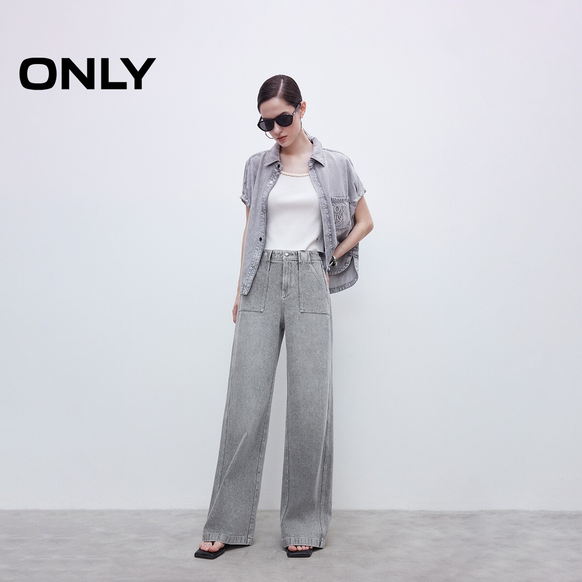 ONLY春季潮流通勤小个子友好做旧水洗高腰喇叭裤长裤牛仔裤女