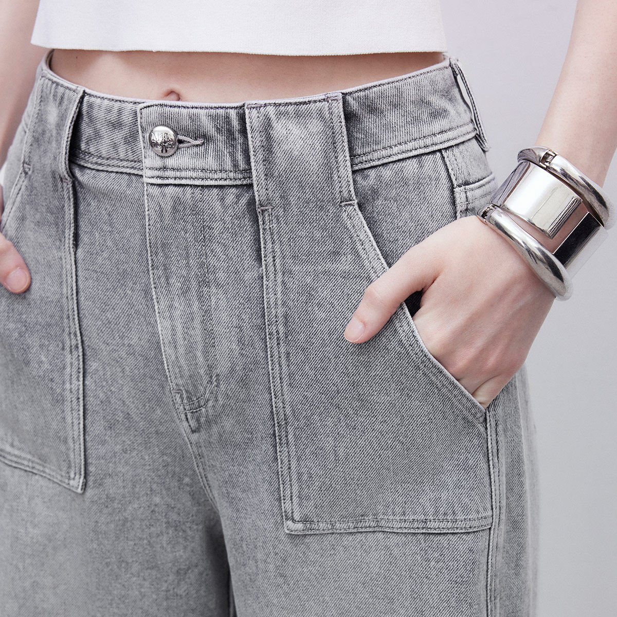 森柔|森马牛仔裤女春季做旧浅色长裤女生显瘦潮流简约时尚直筒裤