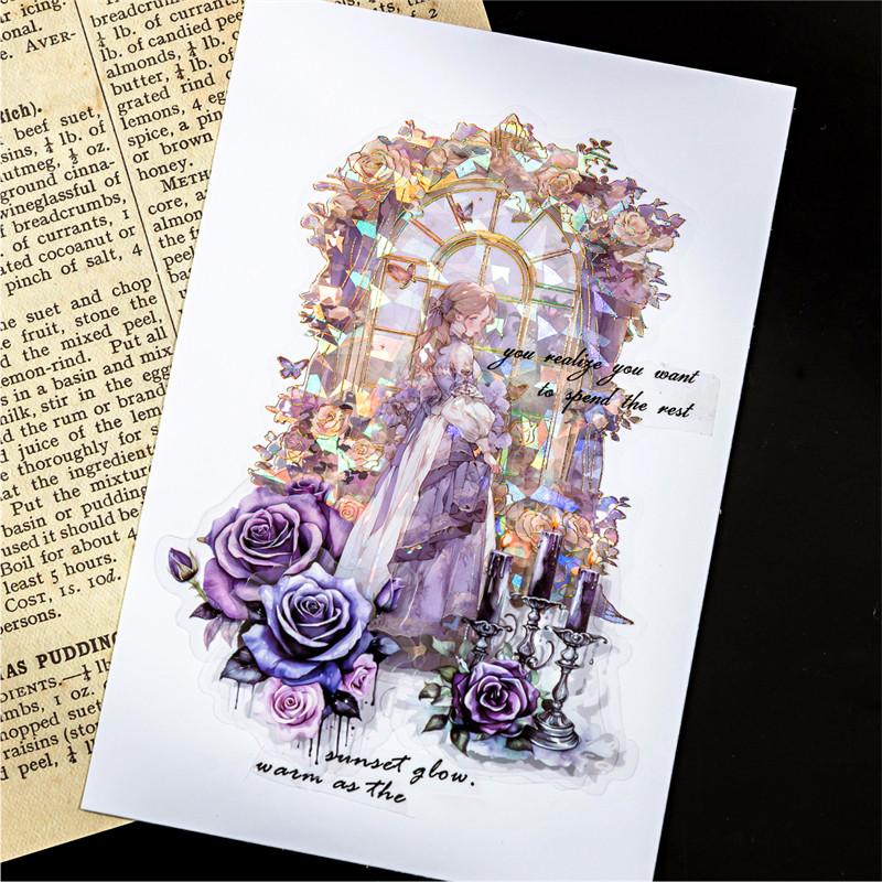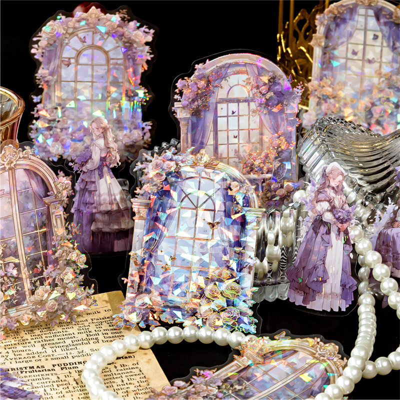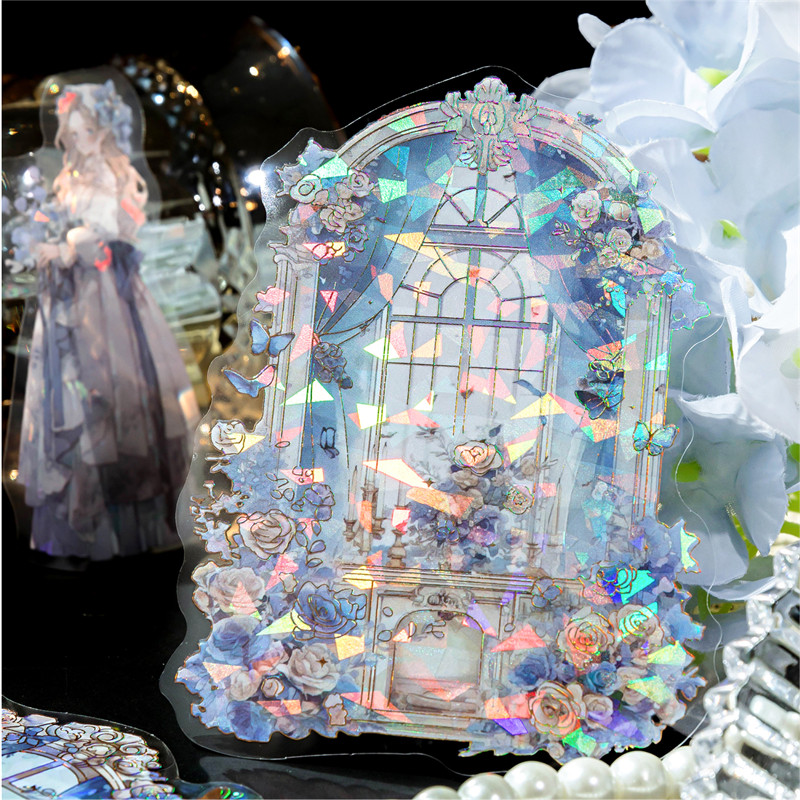 陌墨宫廷佳人贴纸包PET镭射金贝壳光梦幻花窗少女diy手帐装饰贴画
