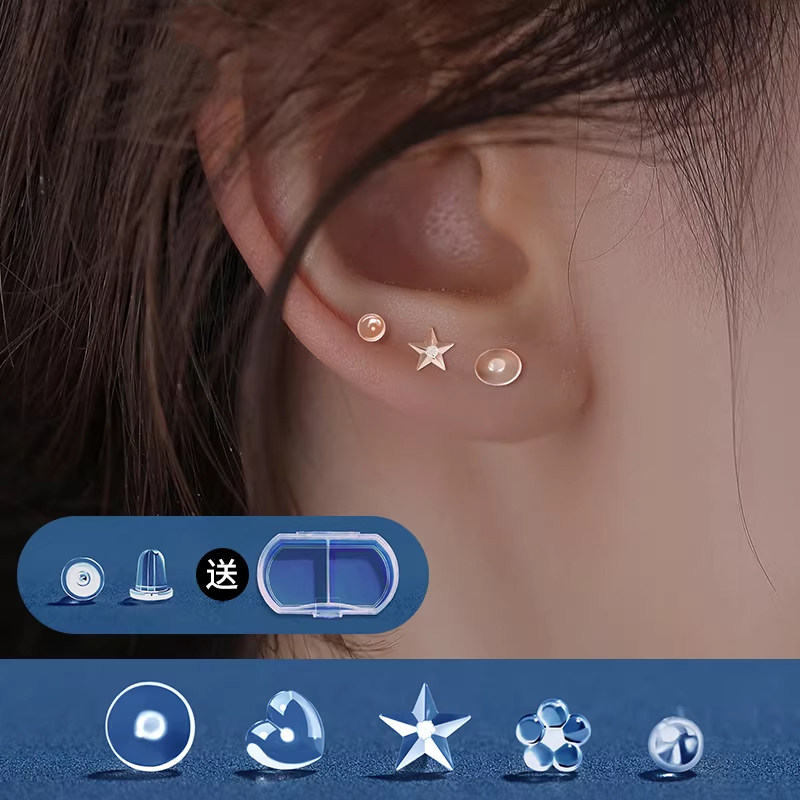 耳堵防掉超紧食品级耳钉堵塞防掉耳环后塞配件耳钉堵头耳饰固定器