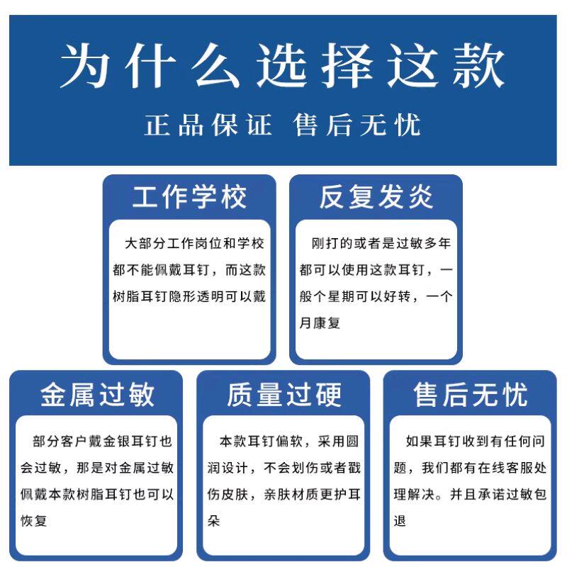 养耳洞树脂耳钉隐形透明耳棒防堵耳针硅胶耳堵学生免摘耳骨钉耳饰