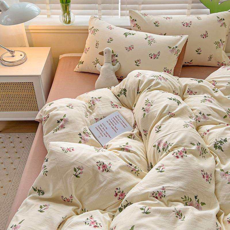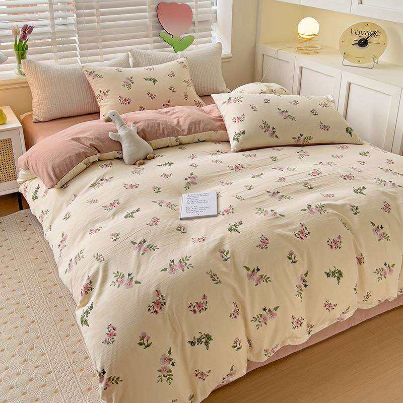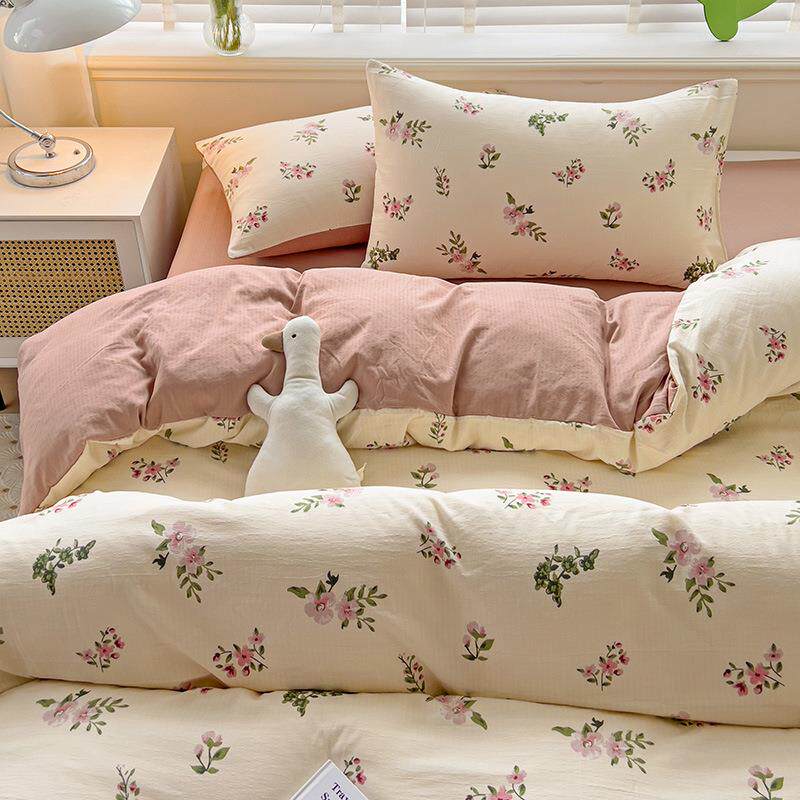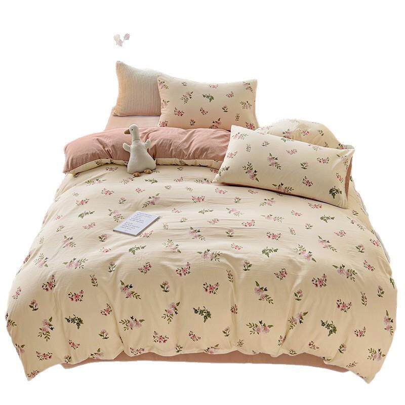 新款小清新水洗棉床上四件套小竺棉水洗棉被套学生宿舍三件套被单