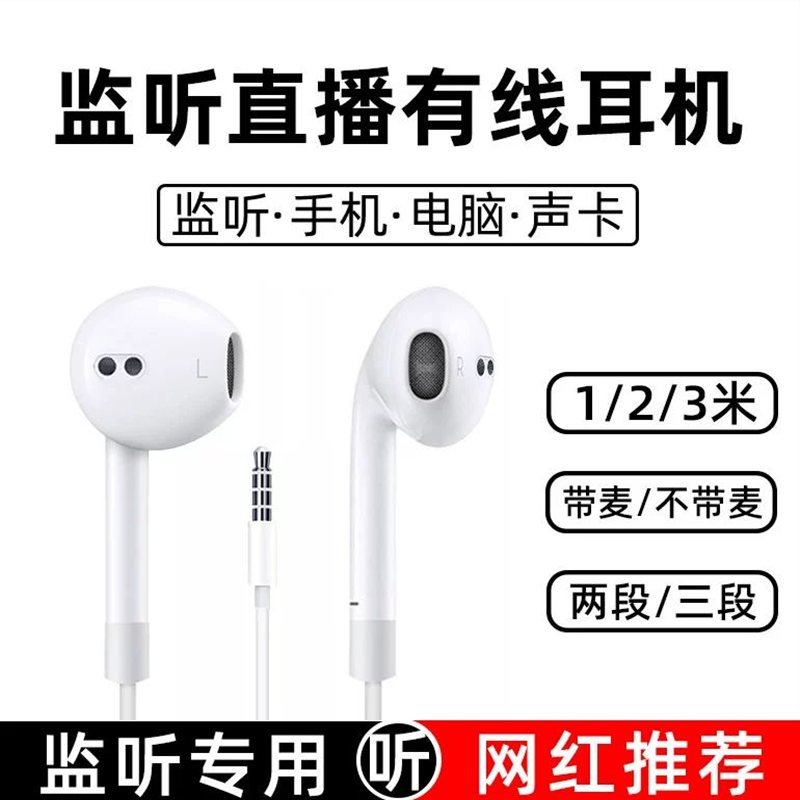 有线耳机主播直播声卡监听耳机台式机乐器通用半入耳式加长耳机