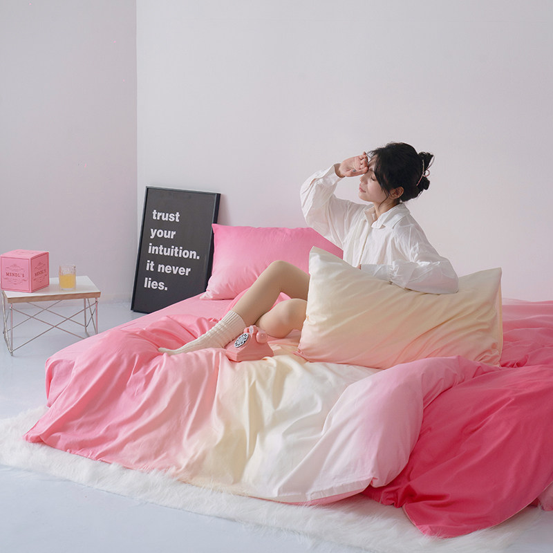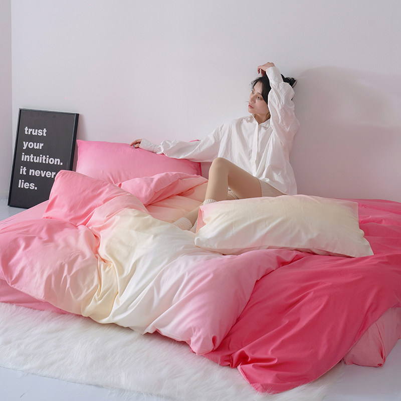 高级感渐变色纯棉100床上四件套全棉床品被套床单三件套床笠被罩