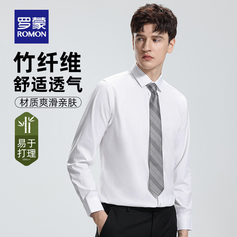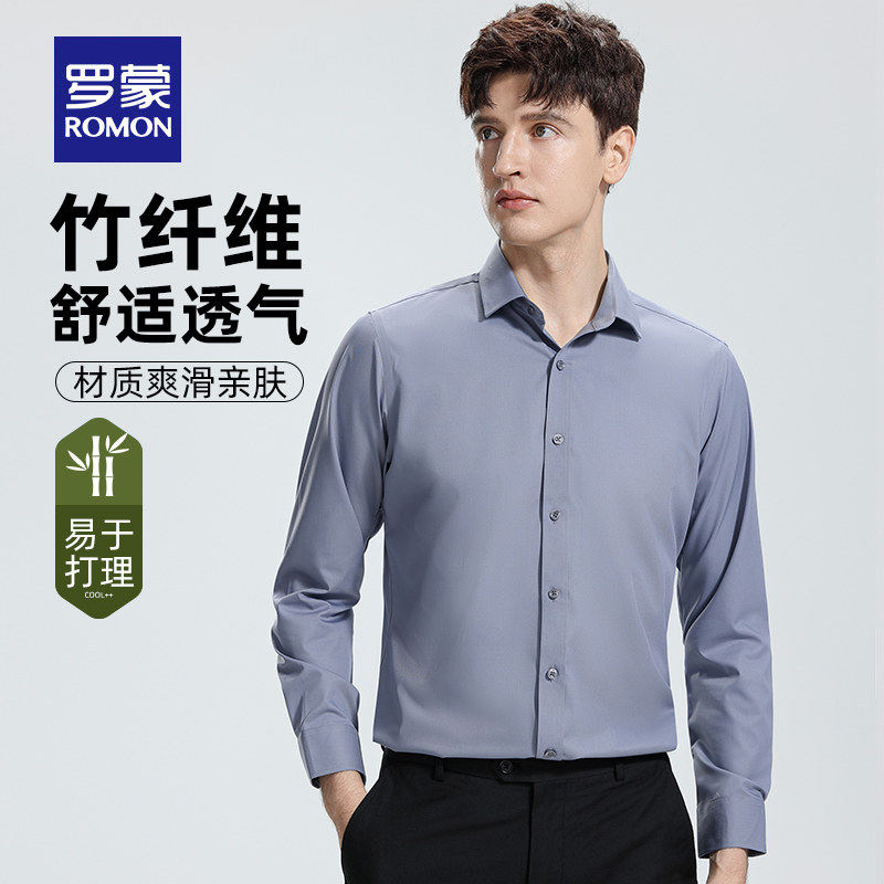 【竹纤维】罗蒙男士商务长袖衬衫2026春季新款职业工装易打理衬衣