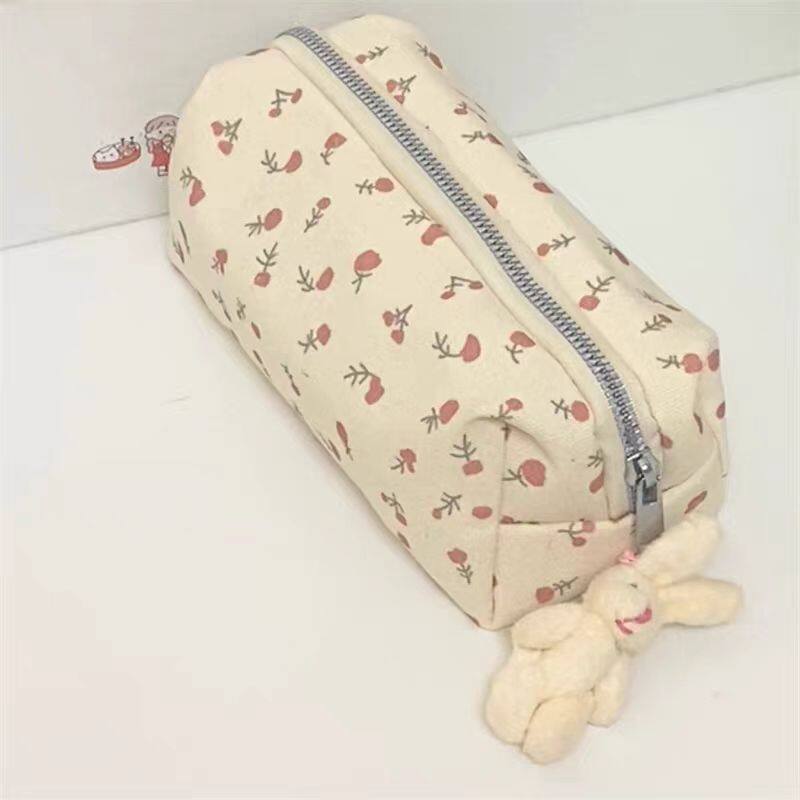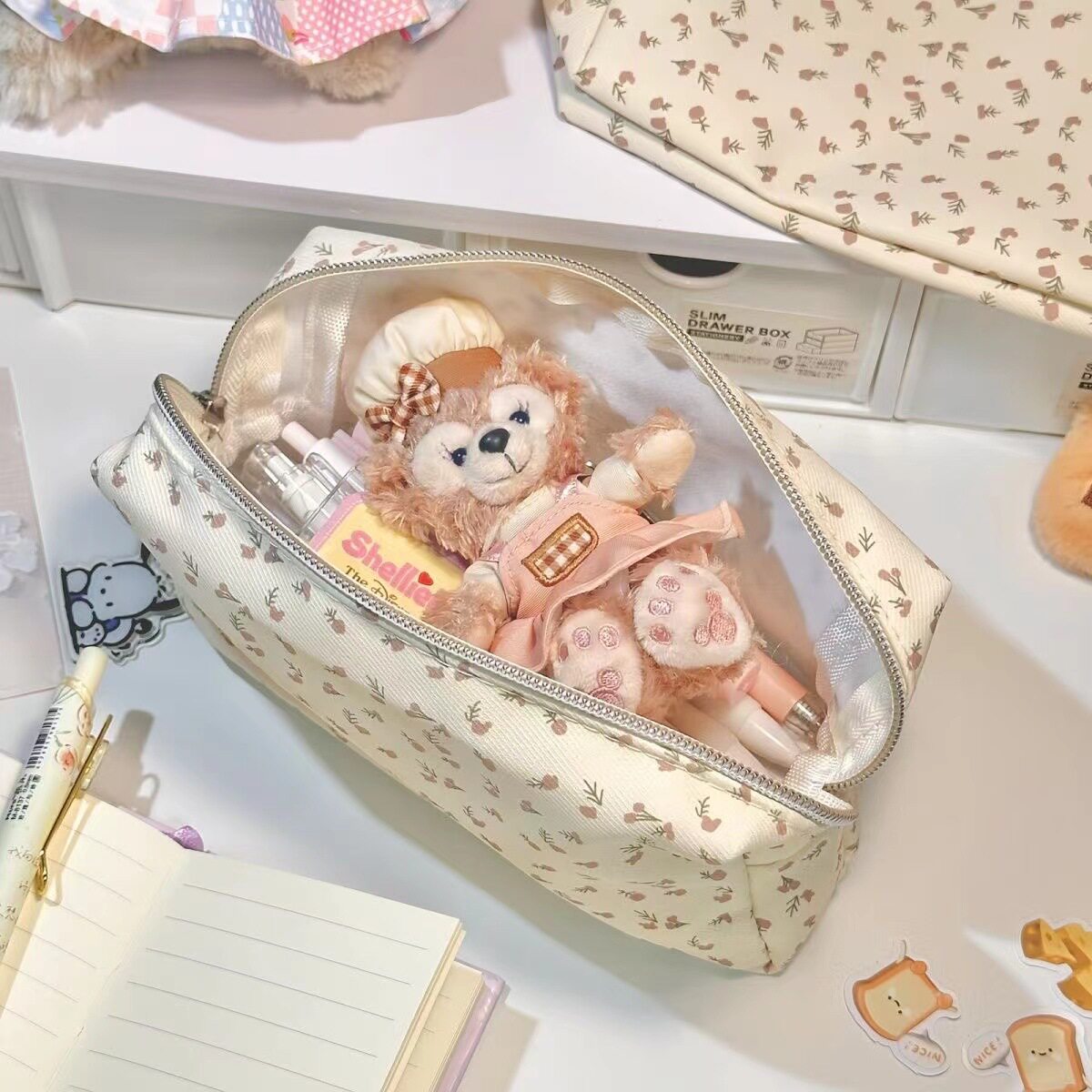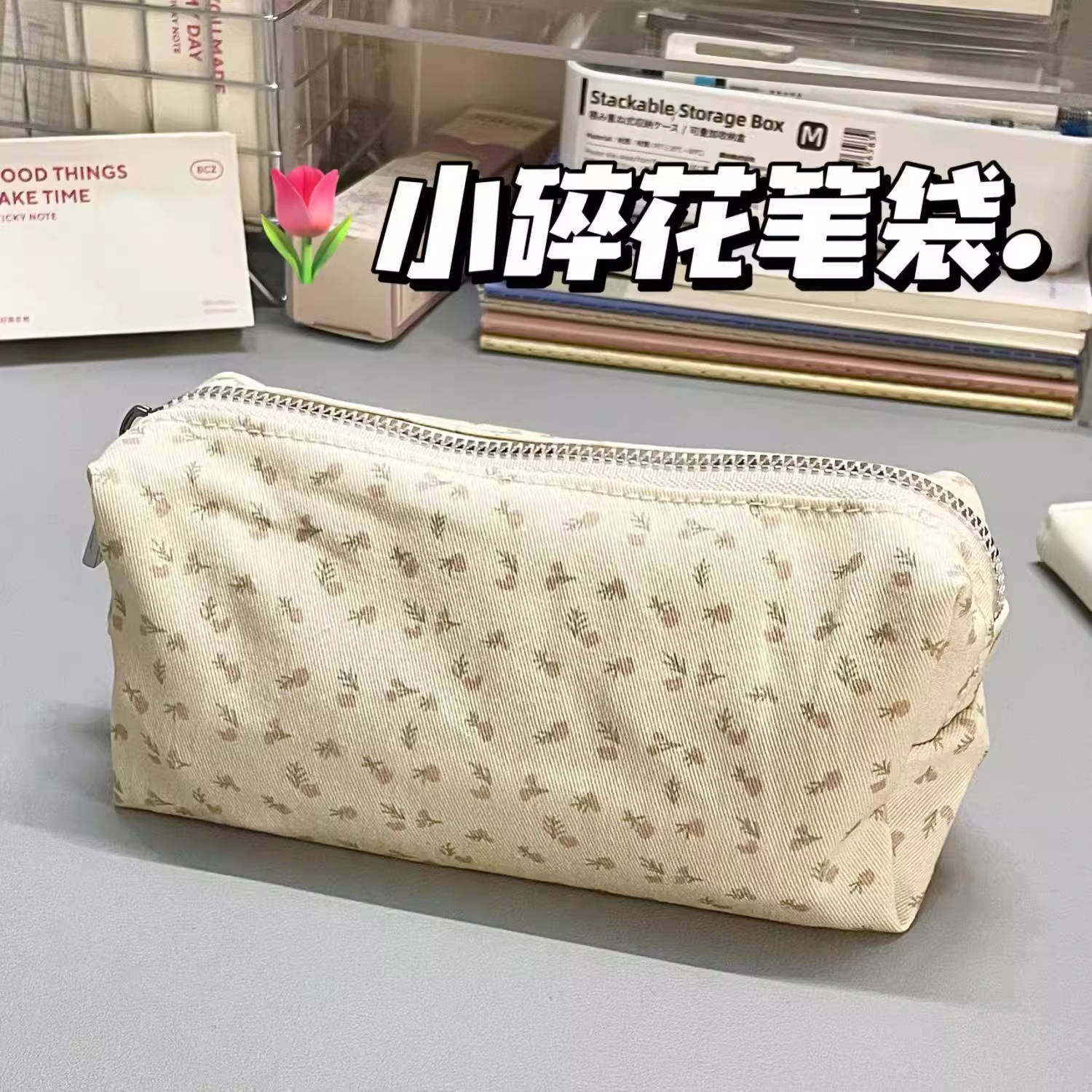 小清新奶油学生碎花笔袋女大容量文具铅笔盒甜美可爱化妆品收纳包