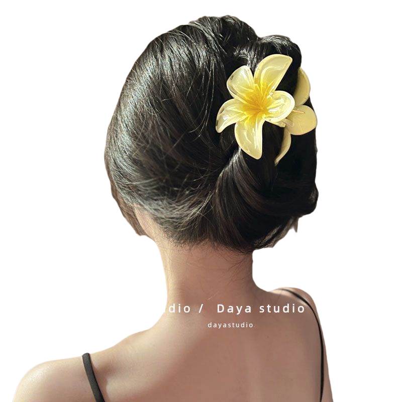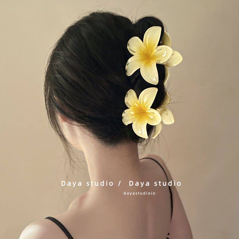 鸡蛋花抓夹海边夏日风旅游度假氛围感甜美小清新后脑勺盘发鲨鱼夹