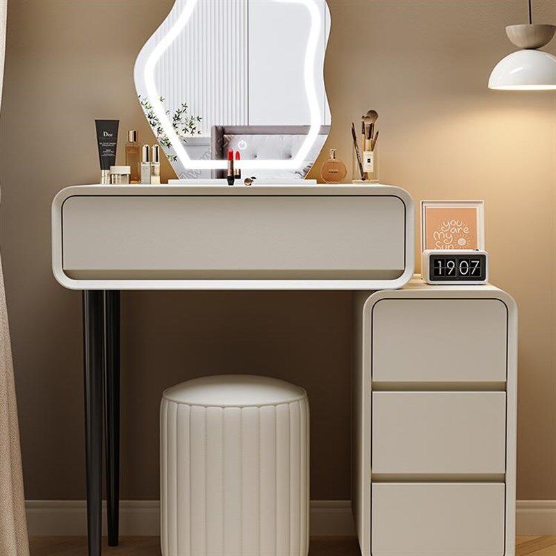 床笠床笠奶油风实 木主卧梳妆 台卧室现代简约化妆 台斗柜伸缩一