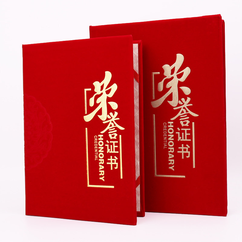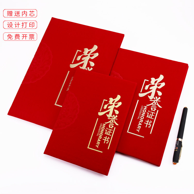 启恒红绒面荣誉证书外壳烫金定制内页制作打印聘书公司企业优秀员工颁奖大学生教师获奖12k8k批发包邮