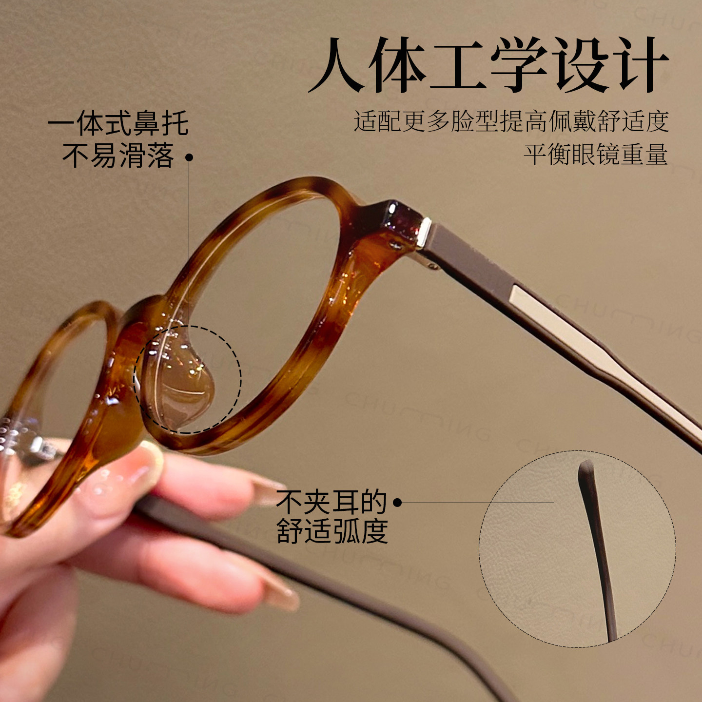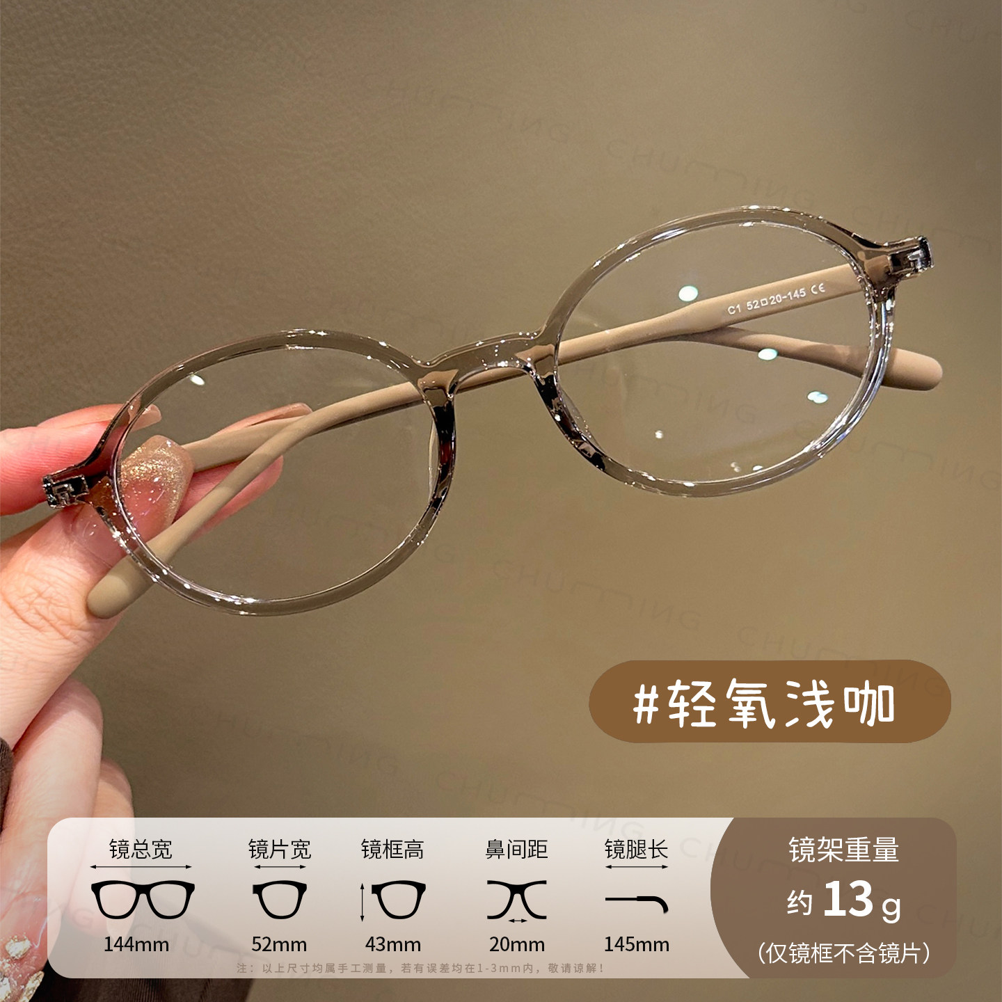 loho冷茶色素颜超轻眼镜女近视可配度数防蓝光大脸高级感眼睛镜框