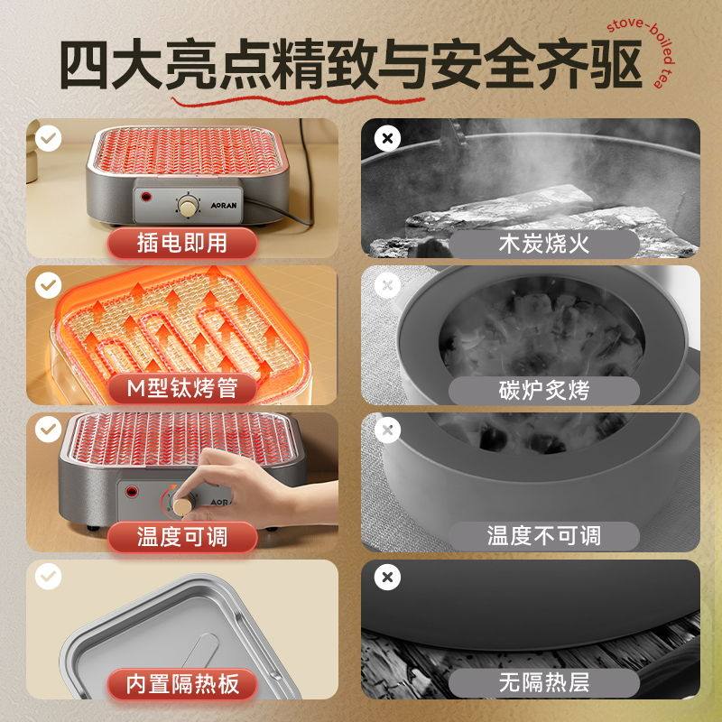 围炉煮茶烤火炉套装电炉烧烤炉子家用室内烤肉炉器具全套插电围聚
