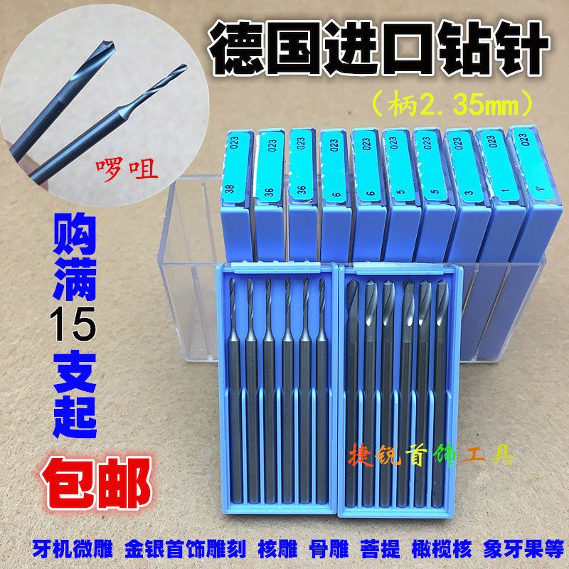 德国蓝盒钻针金银2.35麻花钻头车针打孔钻孔工具微雕铣刀核雕刻刀
