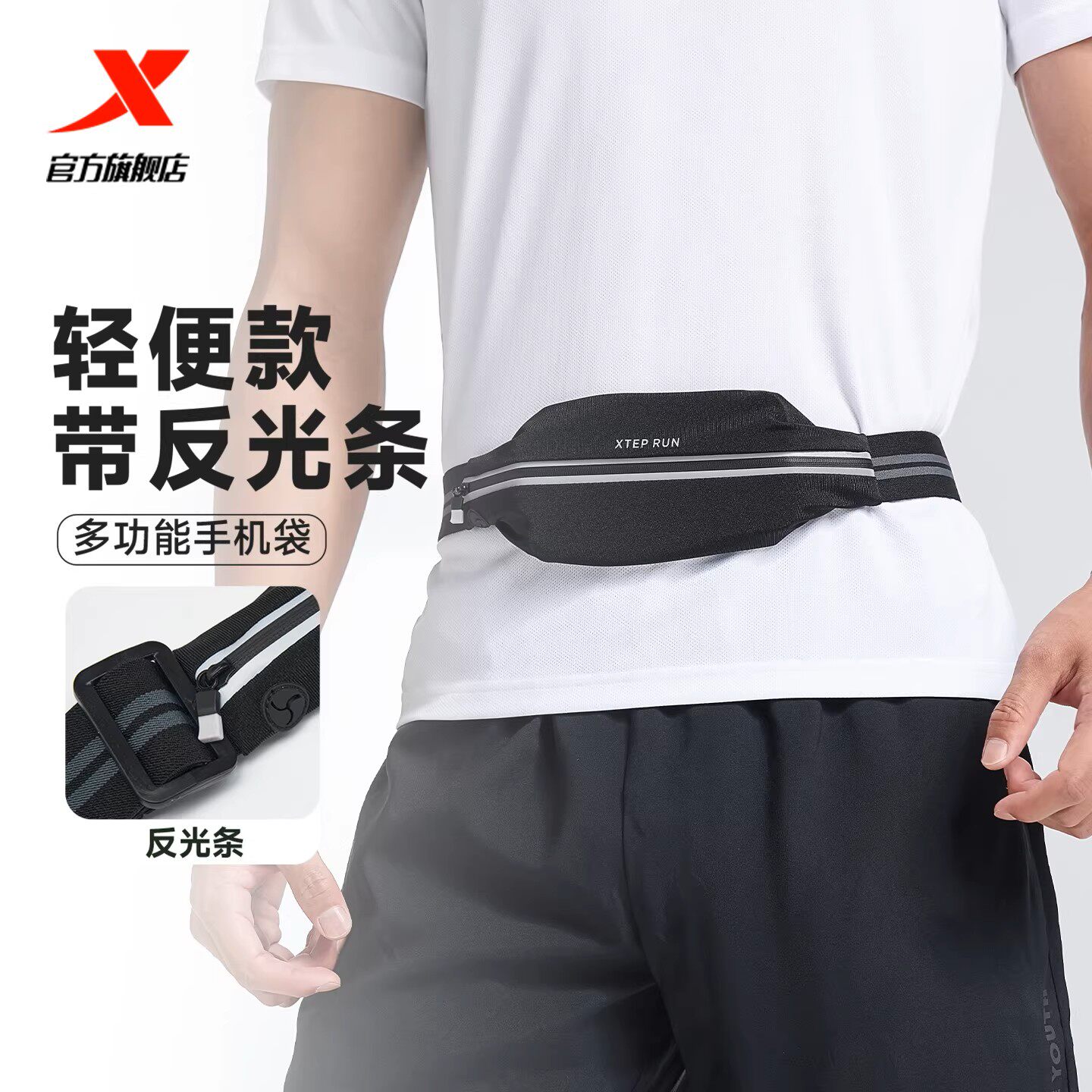 特步腰包男女骑行手机包夜行反光跑步马拉松装备多功能运动包包