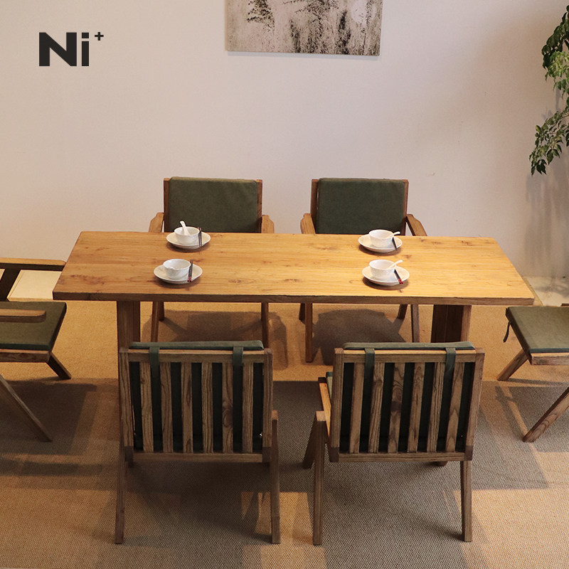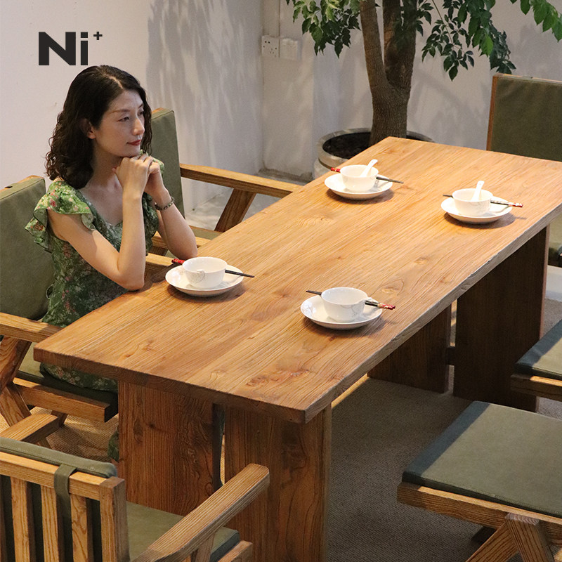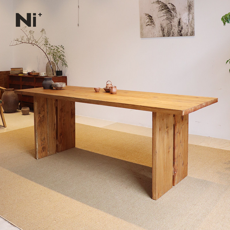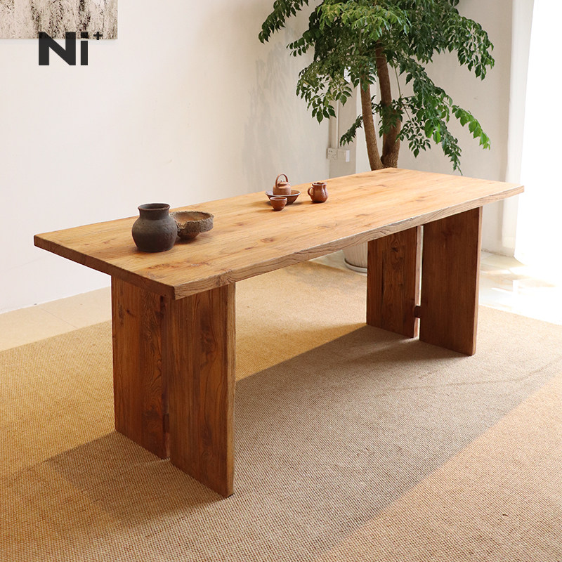 Ni尼家实木餐桌侘寂风老榆木原木办公桌复古风茶桌工作台餐厅桌子