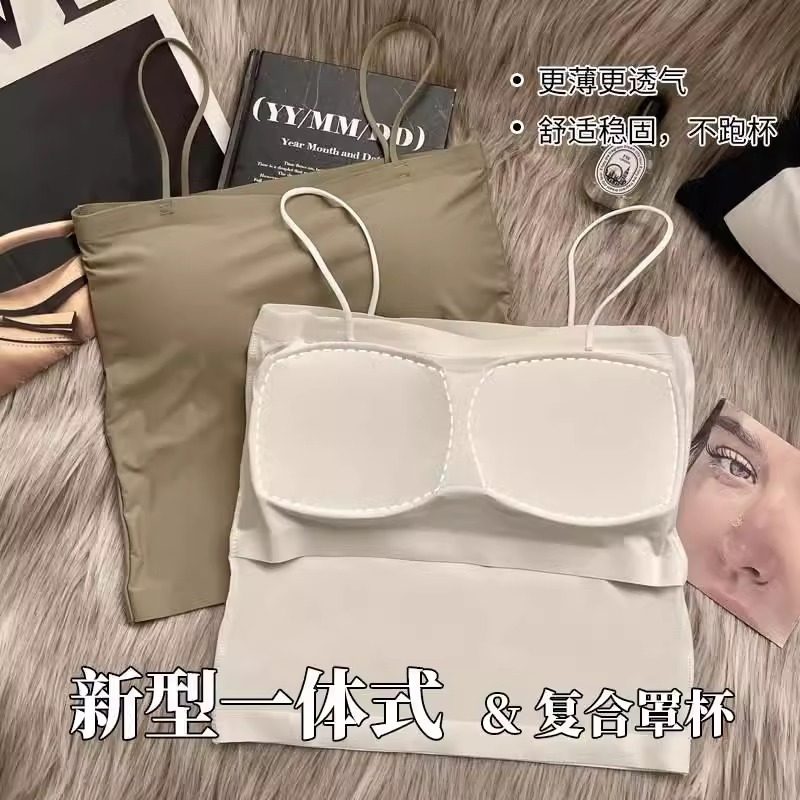 吊带背心女冰丝内搭带胸垫一体抹胸美背内衣文胸夏季穿搭聚拢精致