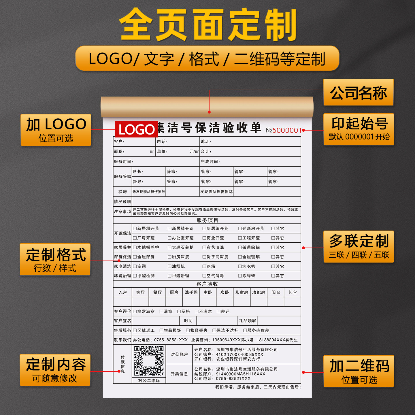【保洁专用验收单】家政公司上门维修派工单据钟点工收纳打扫合同