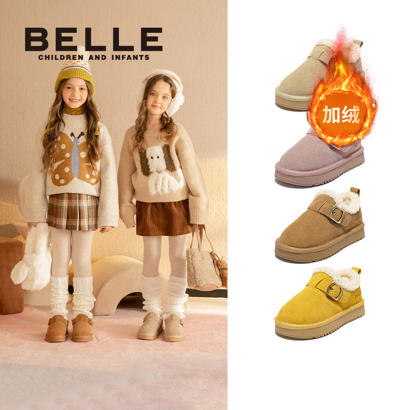百丽童鞋女童雪地靴2025冬季新款加绒保暖棉鞋儿童勃肯鞋男童棉靴