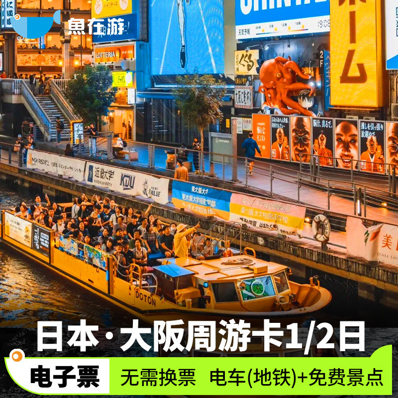 [大阪周游卡-1日卡]日本旅游大阪周游卡1日免费景点天守阁道顿堀游船交通卡地铁巴士
