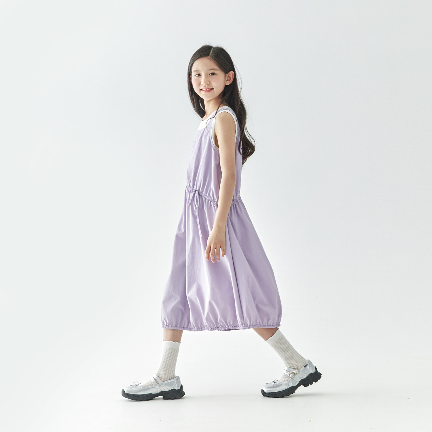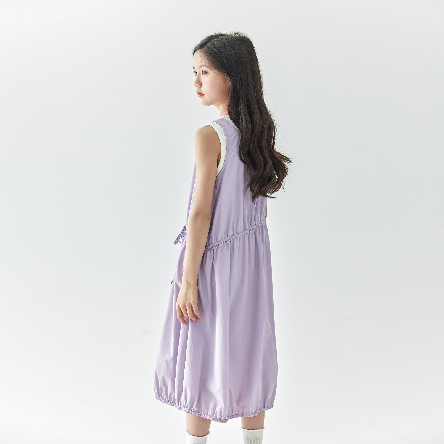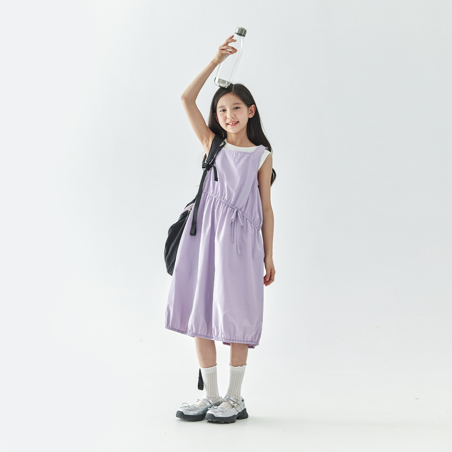 棵初2025年夏季新款女童工装连衣裙不规则腰线紫色亲子花苞裙