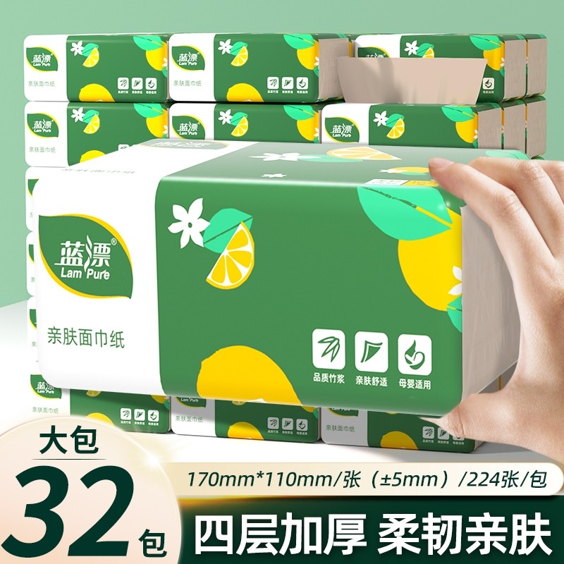 32包蓝漂抽纸巾餐巾纸卫生纸整箱批家用实惠装面巾纸加厚纸抽纸巾