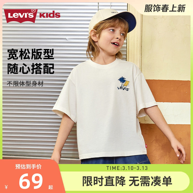 【冰感T恤】李维斯儿童短袖男女童上衣2025夏季新款半袖透气夏装
