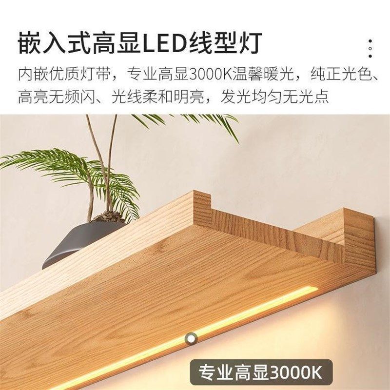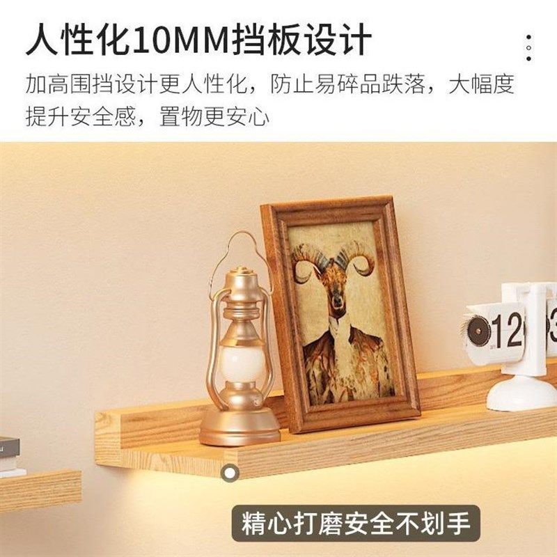 实木墙上发光灯带置物架壁挂客厅书架展示架层板隔板装饰墙壁一字