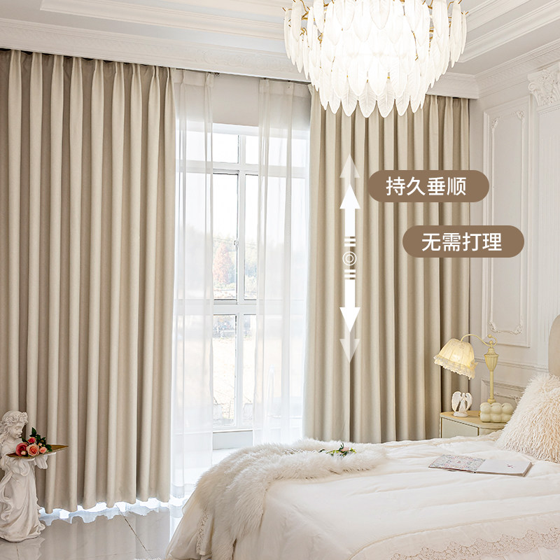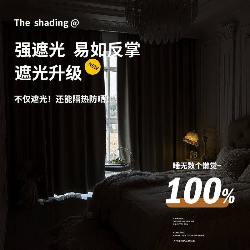 轻奢卧室窗帘遮光2025新款弯轨轨道一整套主卧高级感飘窗挂钩式布
