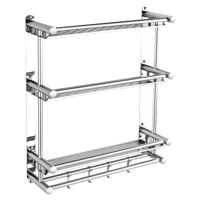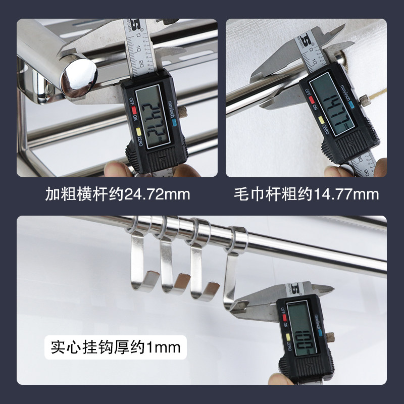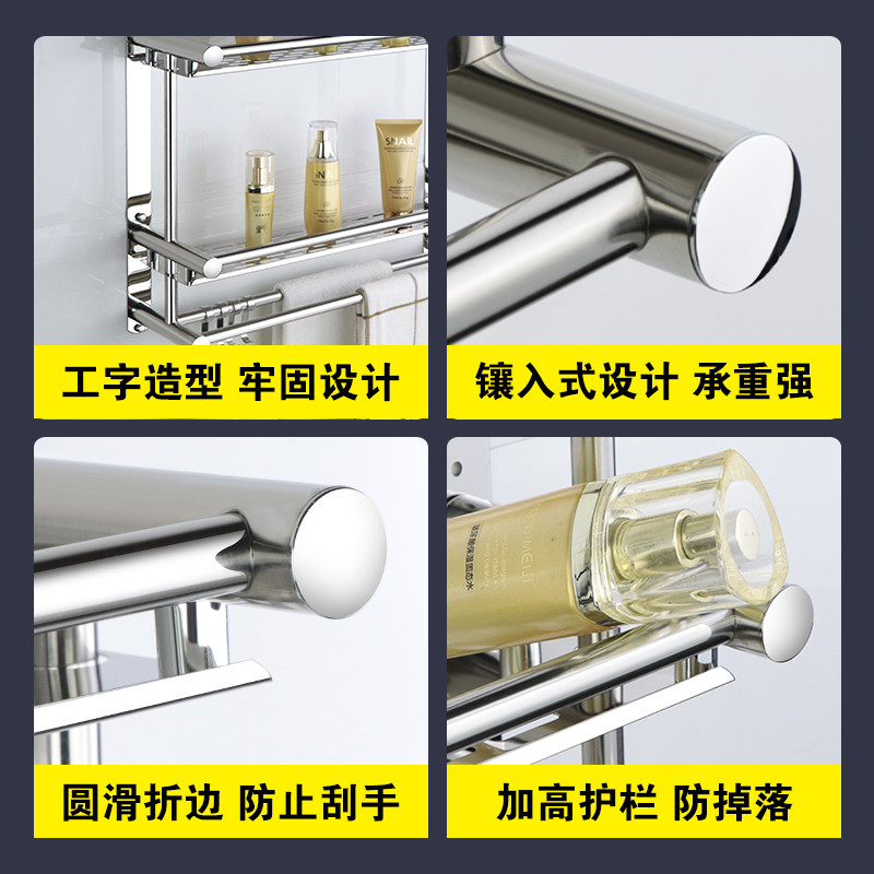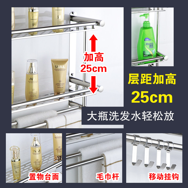加厚不锈钢卫生间置物架免打孔3层三层浴室毛巾架洗漱淋浴房壁挂