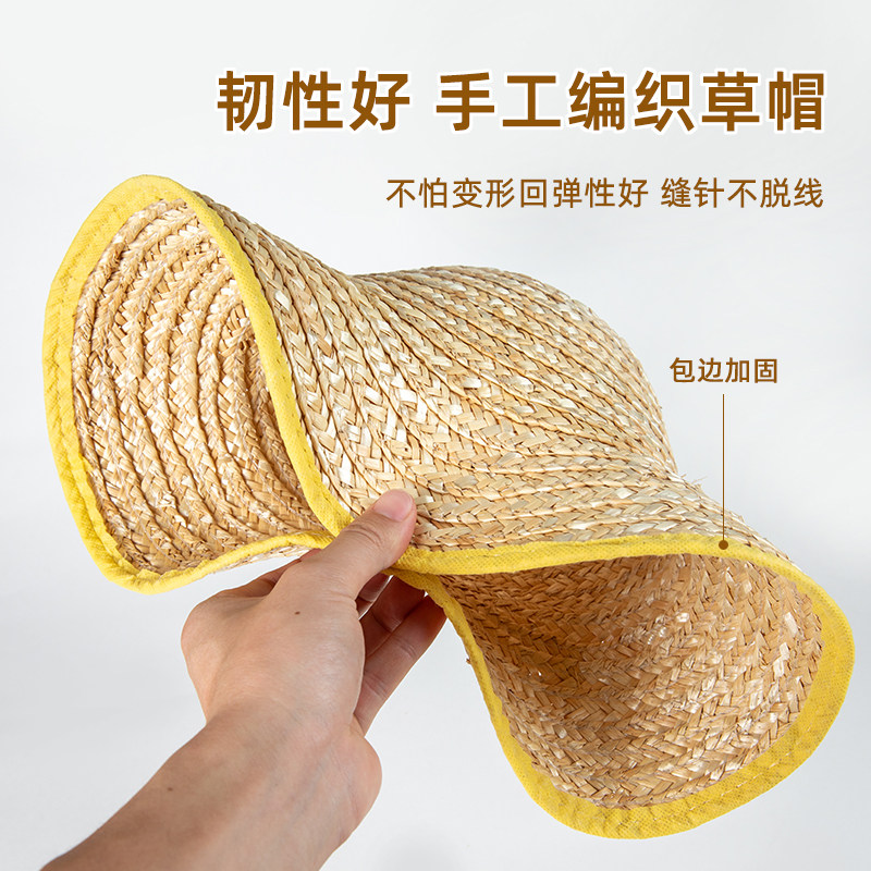 儿童草帽麦秆大檐防晒遮阳大童田园学生男童出游亲子小学生女帽子
