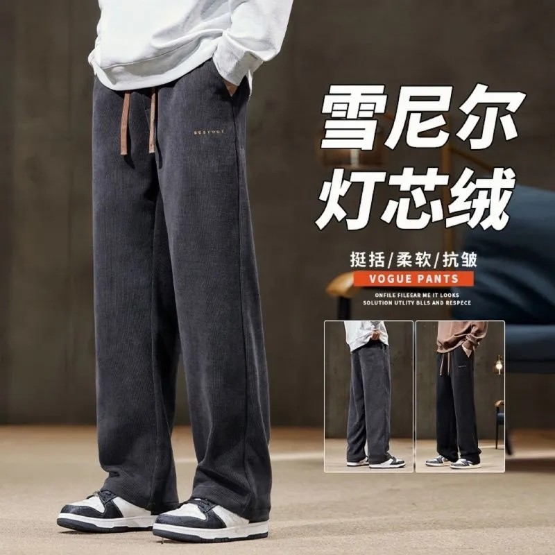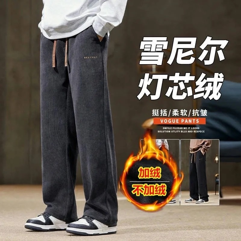 男士运动裤秋冬季2025新款直筒宽松长裤加绒运动灯芯绒卫裤子休闲