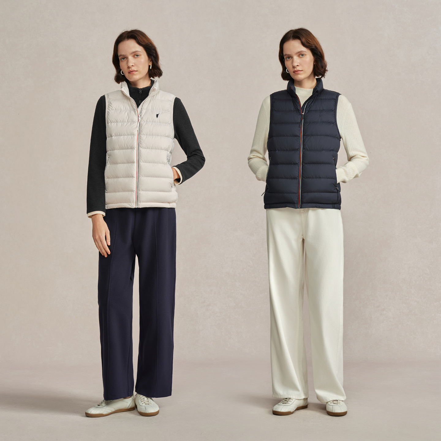POLOWALK女装排骨羽绒马甲2025冬装新款女士轻薄羽绒外套立领背心
