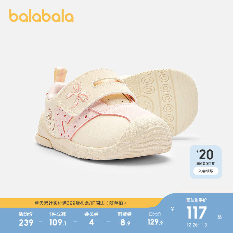 【商场同款】巴拉巴拉女宝宝学步鞋婴儿鞋蝴蝶结2025秋冬新款鞋子