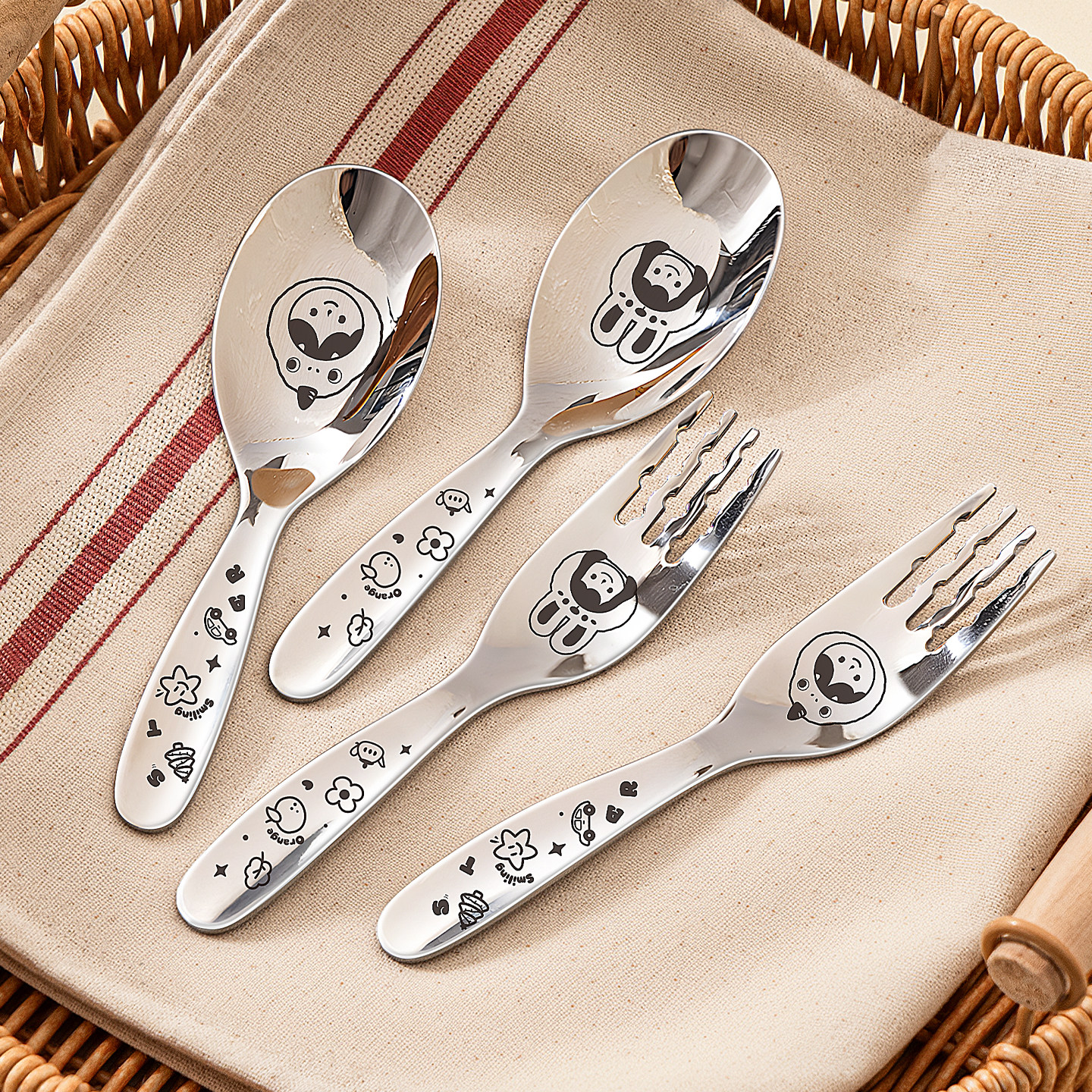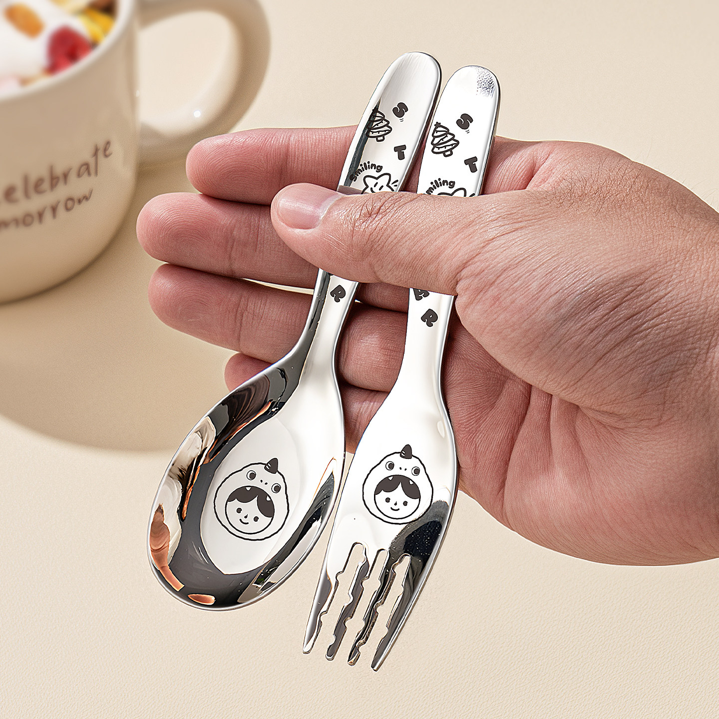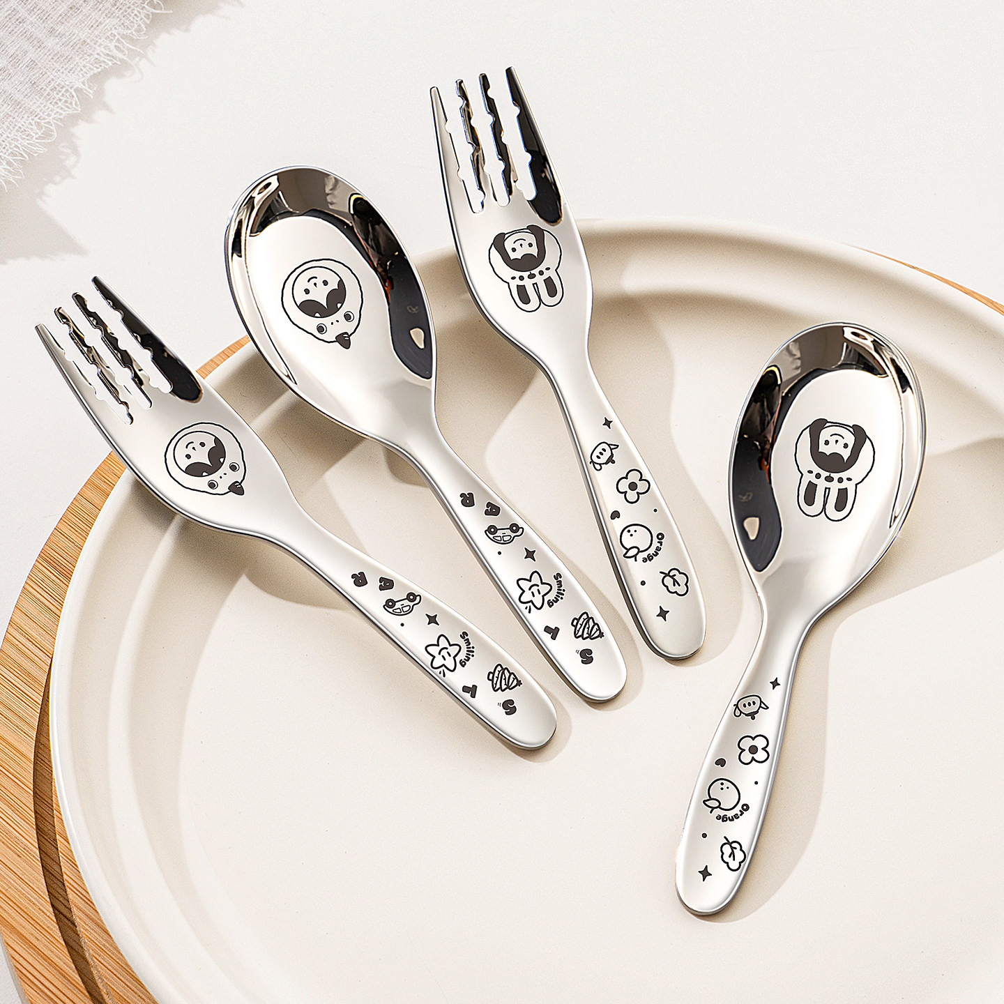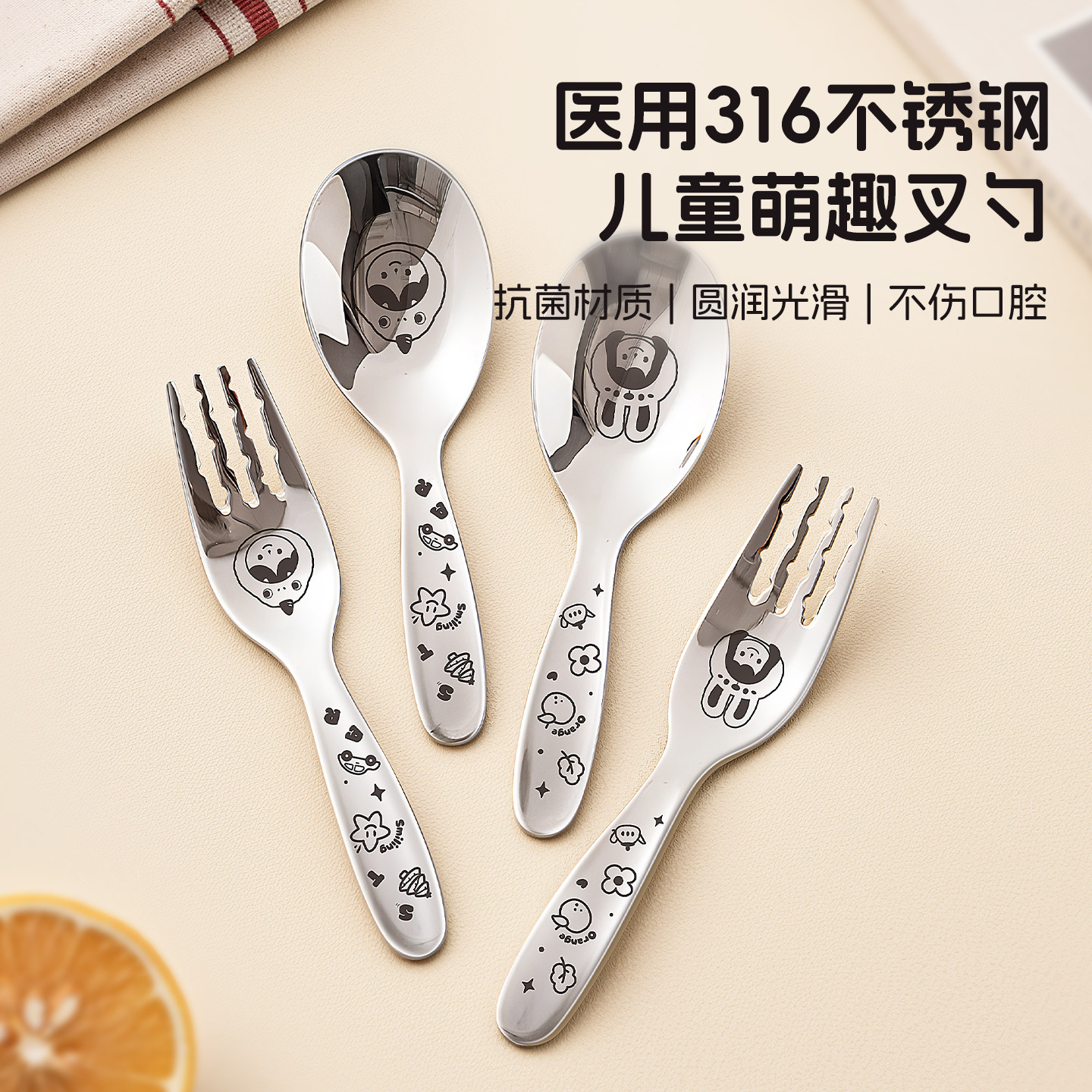 316勺子食品级不锈钢儿童吃饭专用勺子叉子宝宝小勺子高颜值