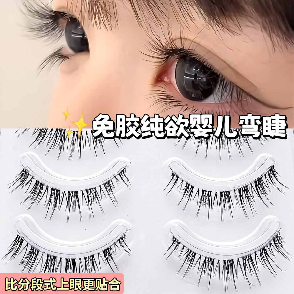 免胶一片式妈生婴儿弯假睫毛整条超自然仿真素颜眼睫毛幼态减龄