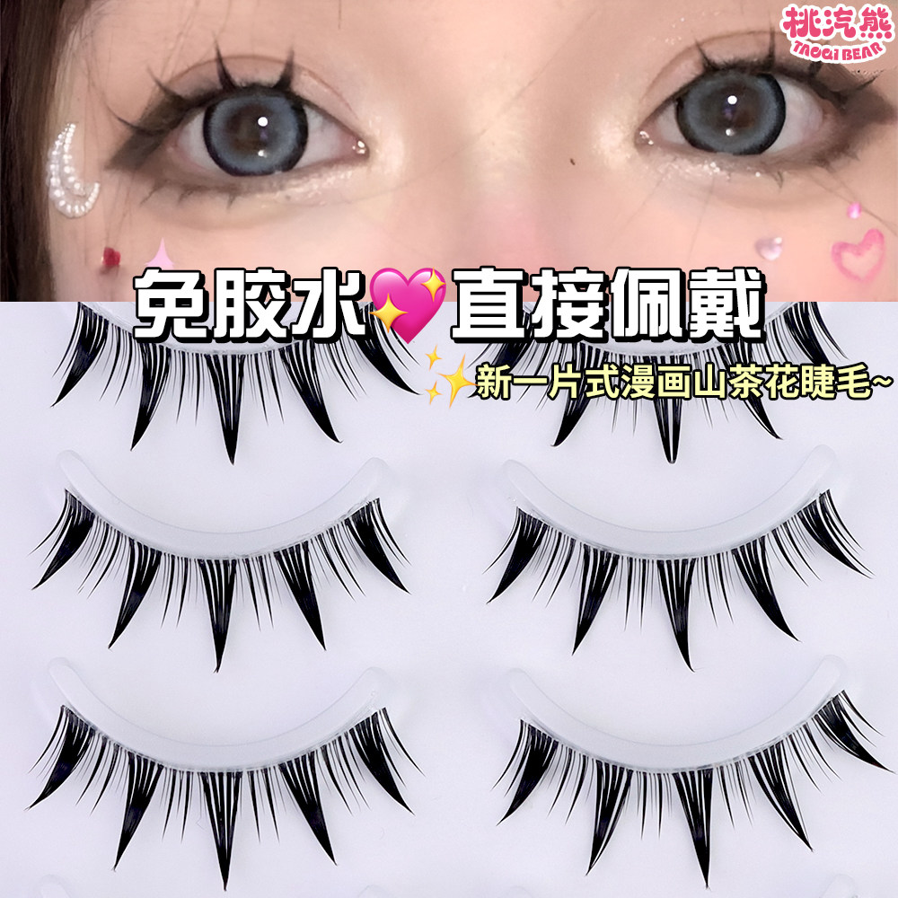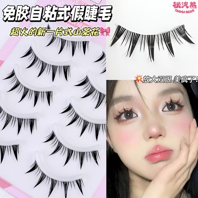 免胶一片式山茶花新手懒人超自然仿真伪素颜淡妆甜妹必备假睫毛