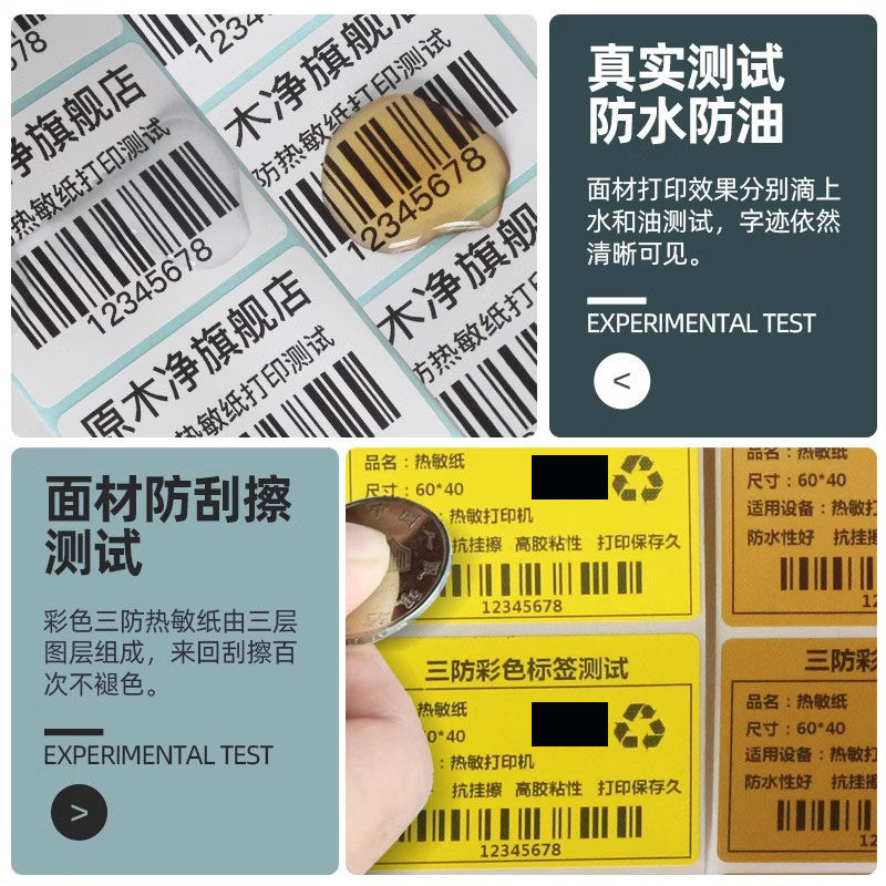 原木净彩色三防热敏标签纸40*30 20 50 60 70 80 90 100x150不干胶条码打印纸黄色贴纸红蓝棕绿橙商品价格色