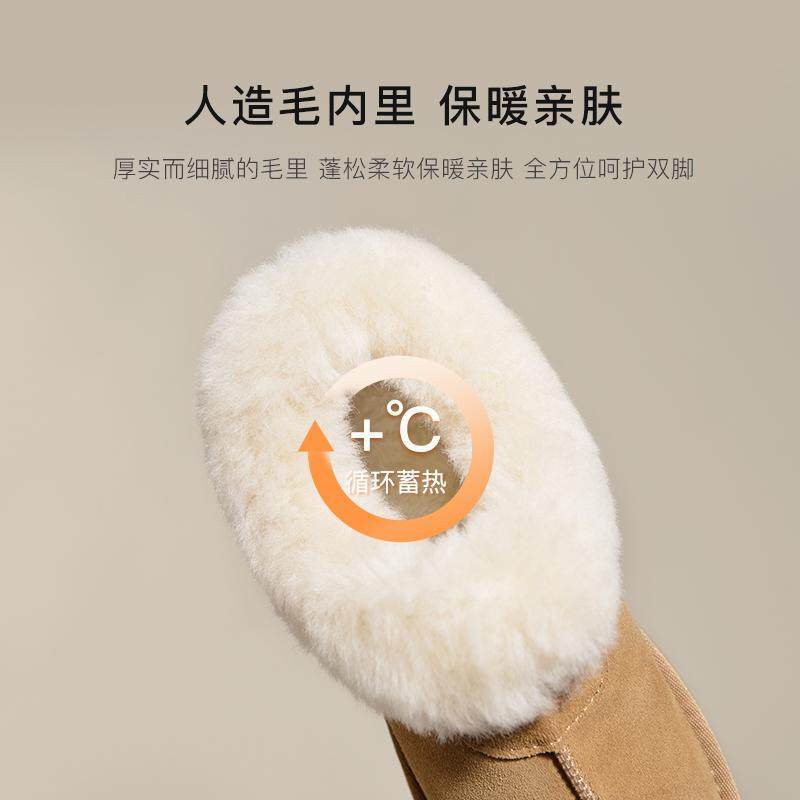 油叽叽~真皮羊毛雪地靴女冬季加绒加厚保暖棉靴厚底增高短筒靴子