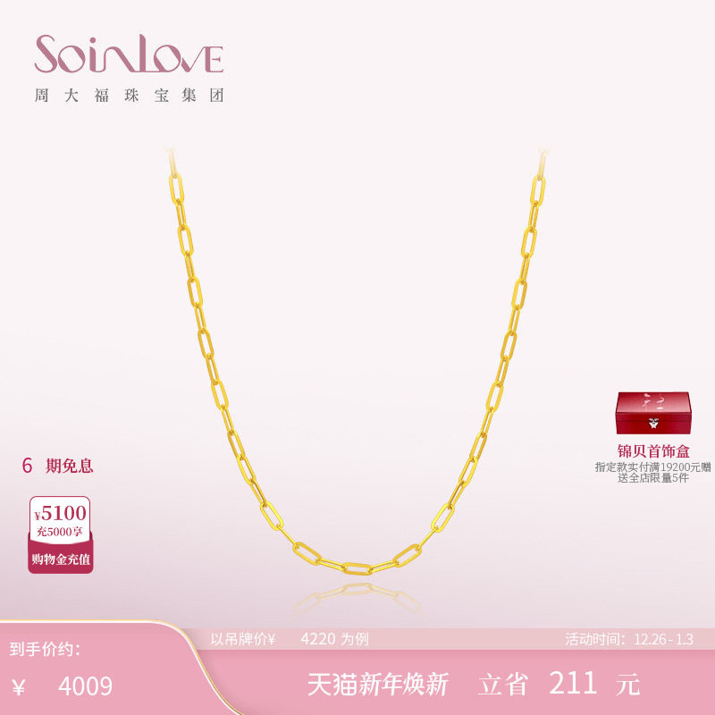 周大福SOINLOVE爱蜜金黄金项链 足金锁骨链素链女送礼搭配多款