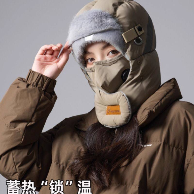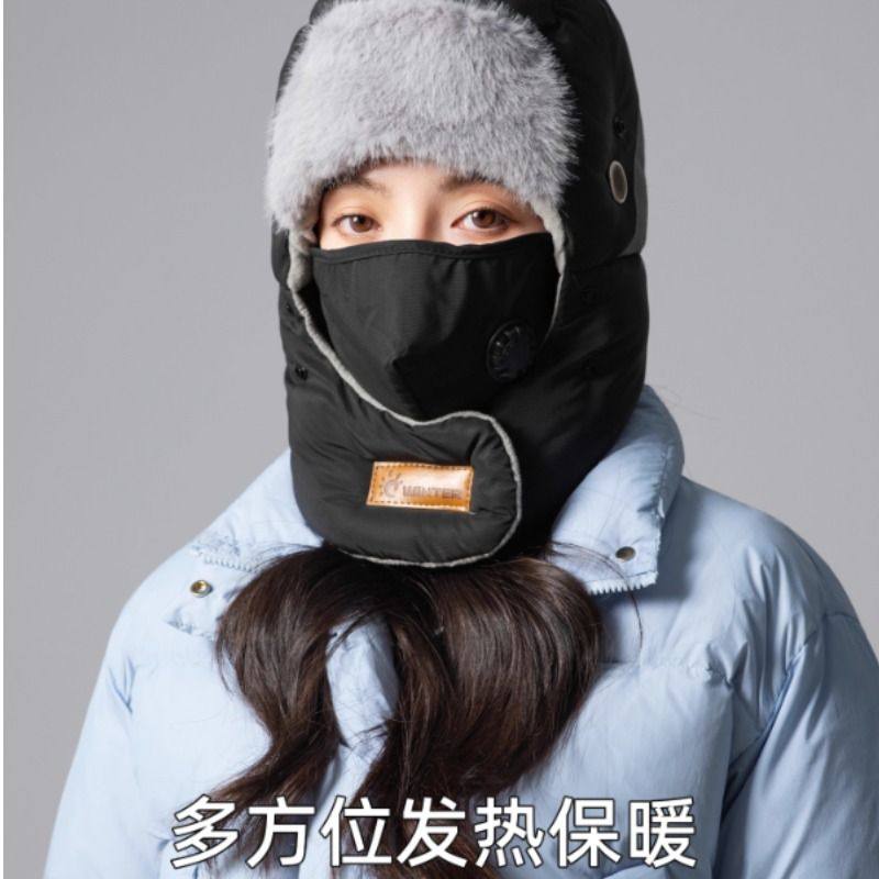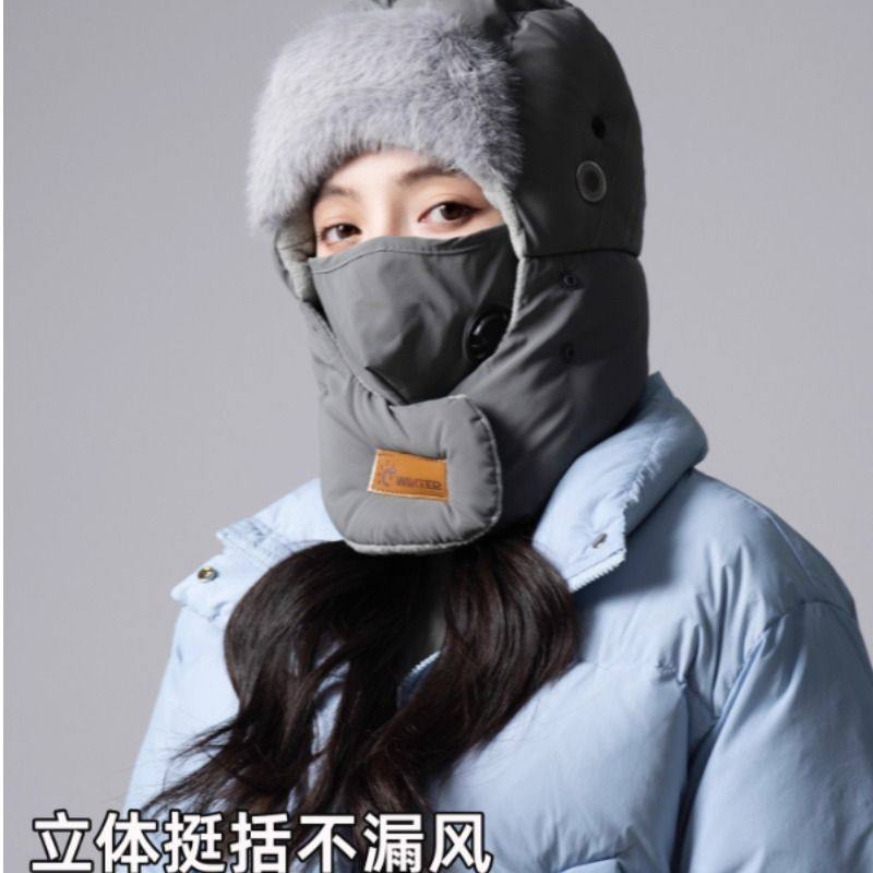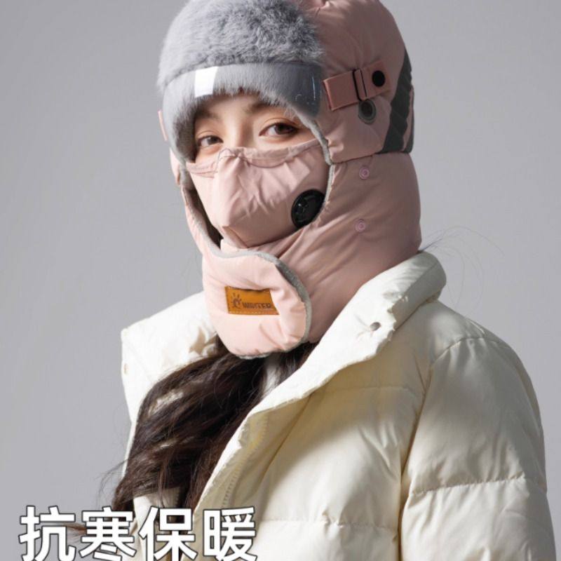 护目镜雷锋帽女士冬季新款保暖防寒护耳加绒防风加厚骑车面罩帽子
