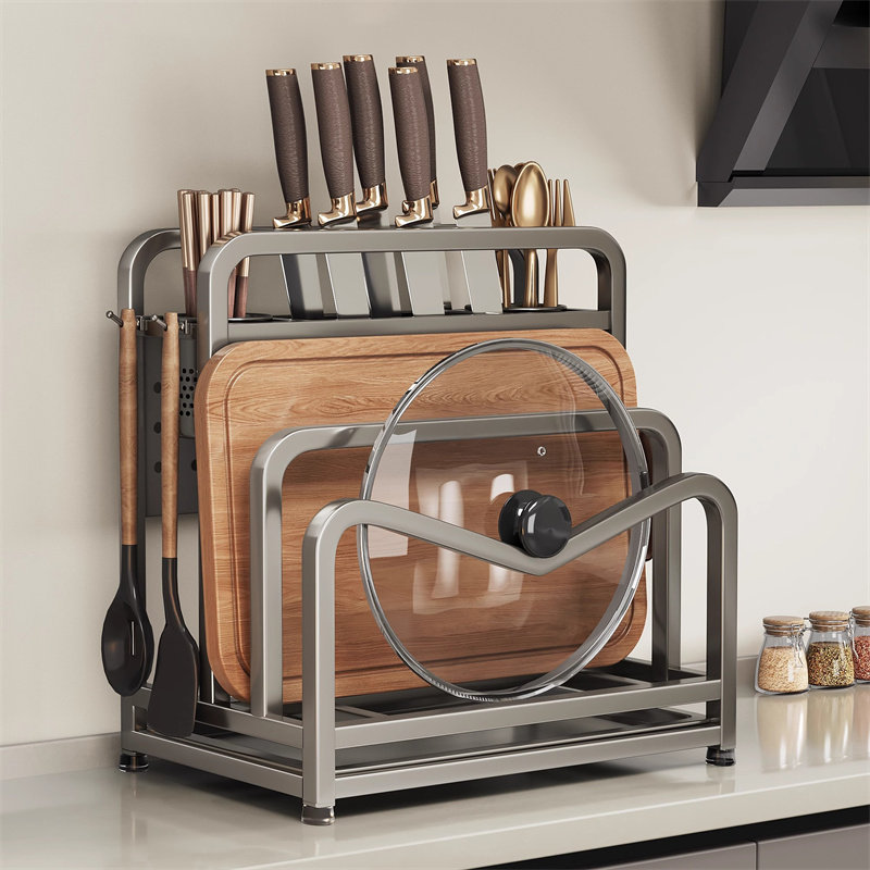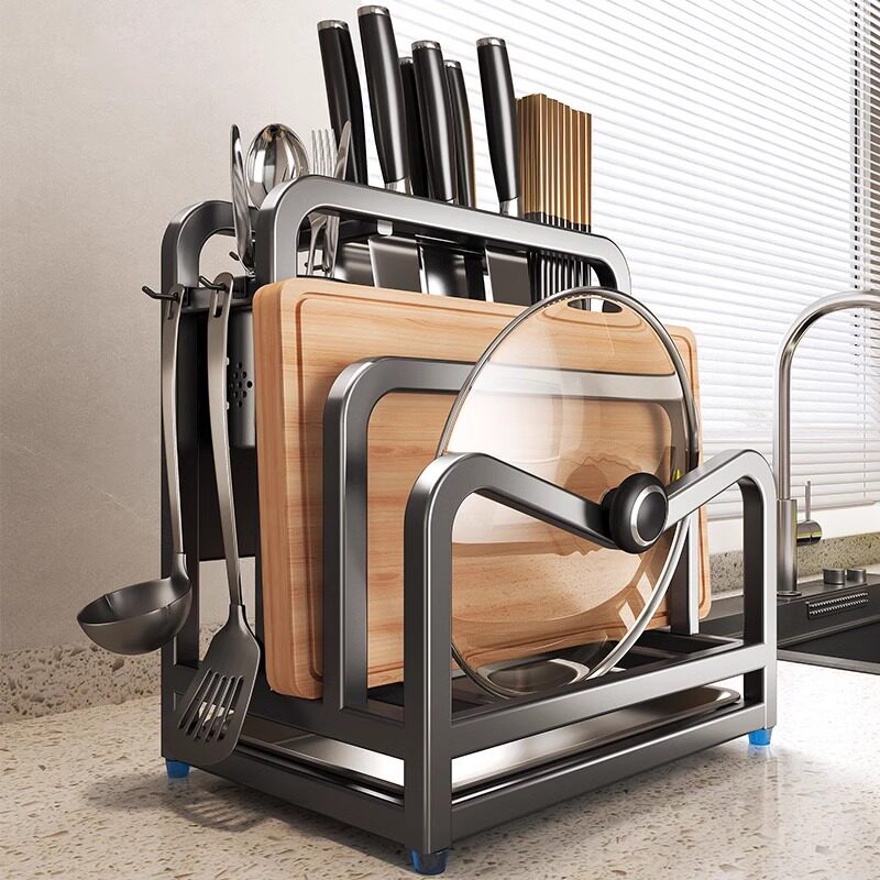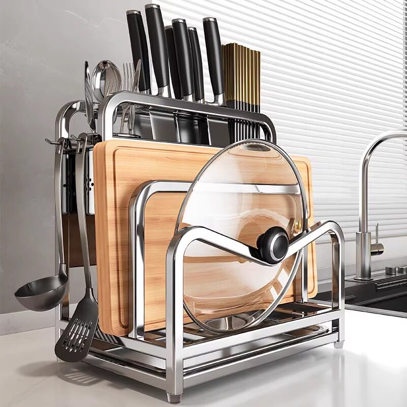 304不锈钢厨房刀架置物架砧板锅盖刀具一体收纳架台面菜板多功能
