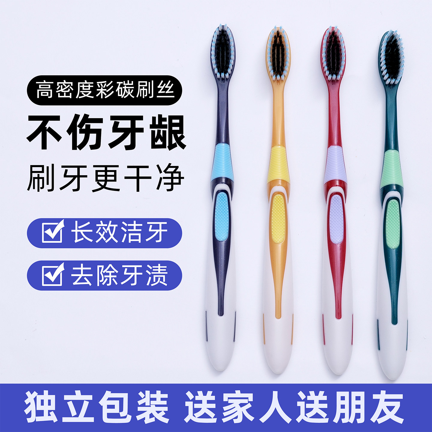 中硬毛牙刷高档独立包装成人家用去牙渍去黄美白清洁抗菌软毛牙刷