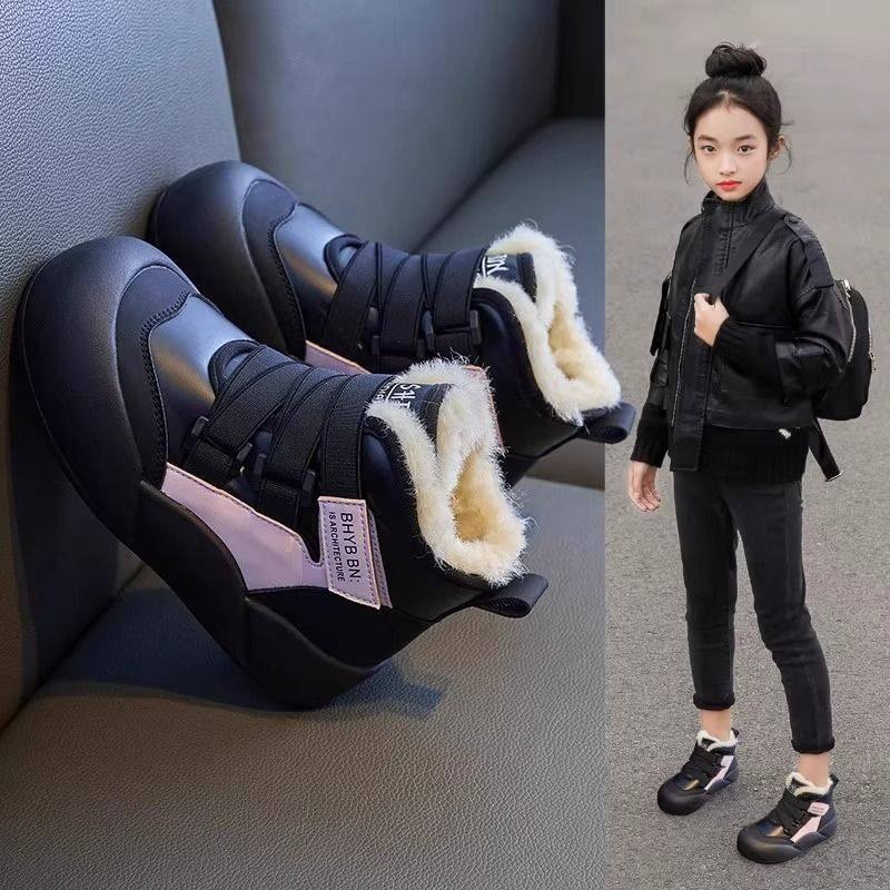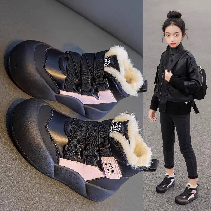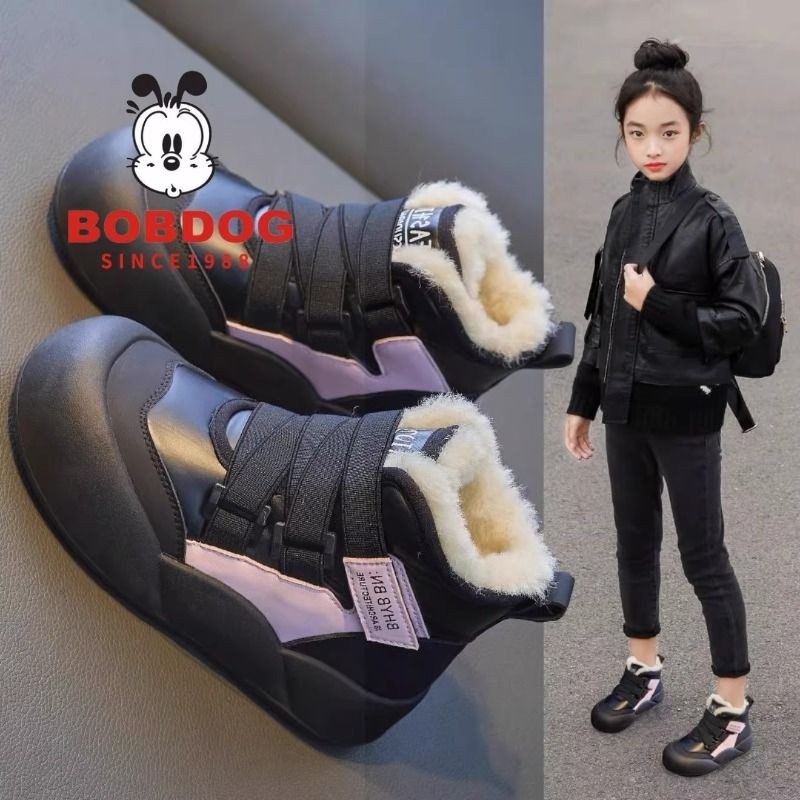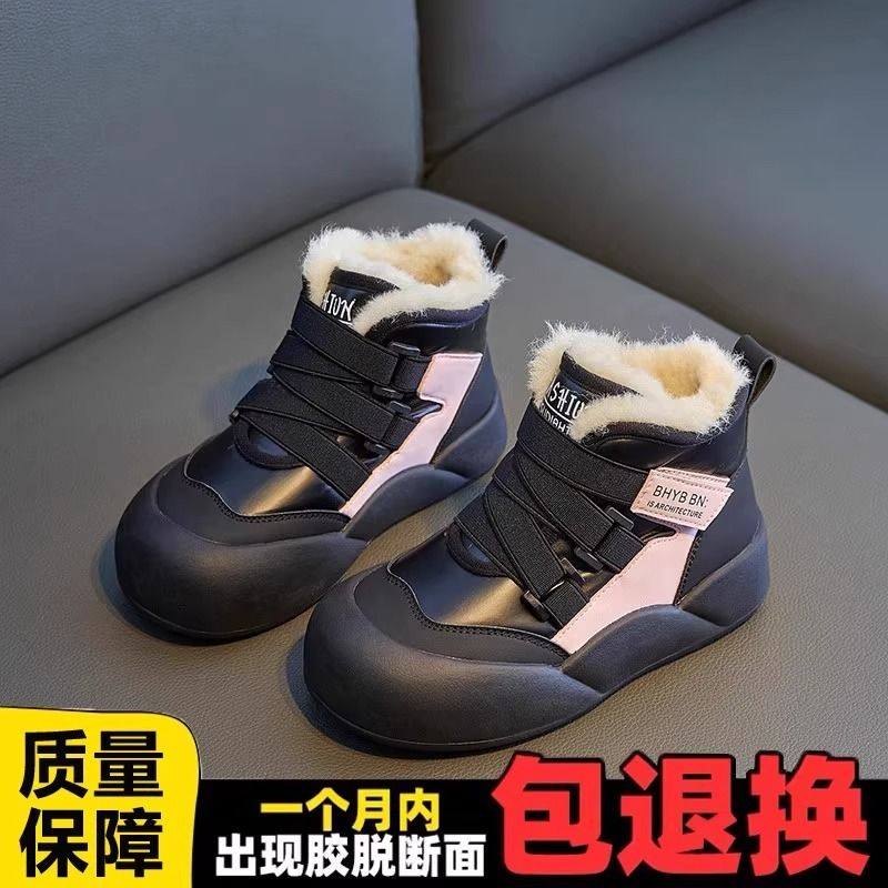 巴布豆女童雪地靴2025新款冬季加绒加厚东北大棉鞋儿童棉靴女童鞋