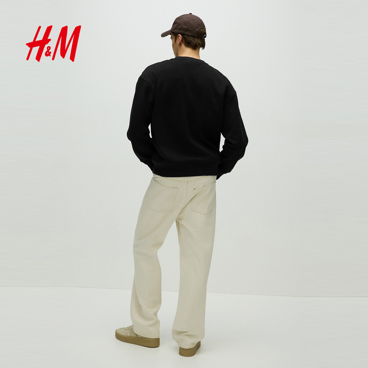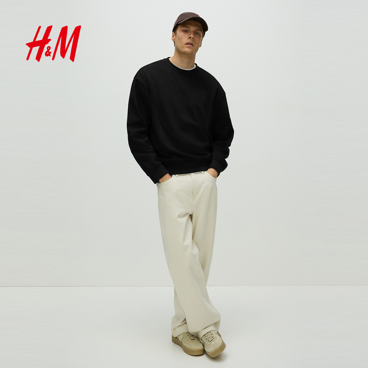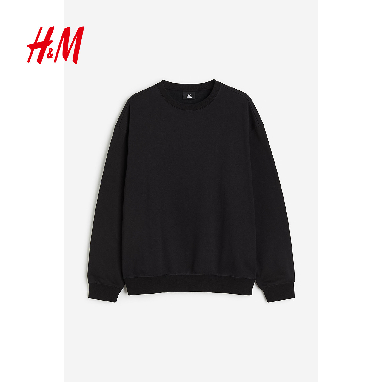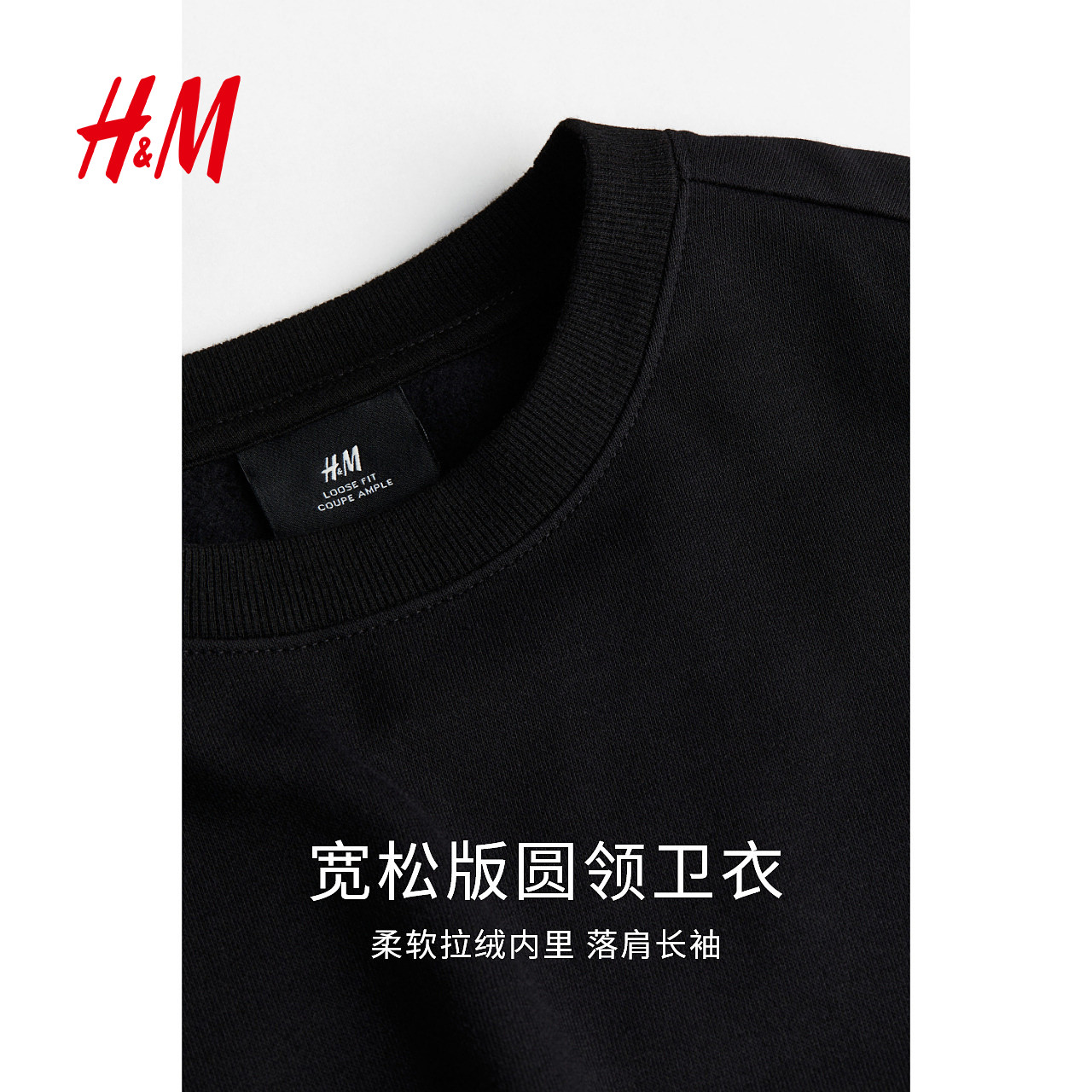 HM男装女装卫衣冬季情侣加绒美式圆领落肩袖宽松套头衫0970818